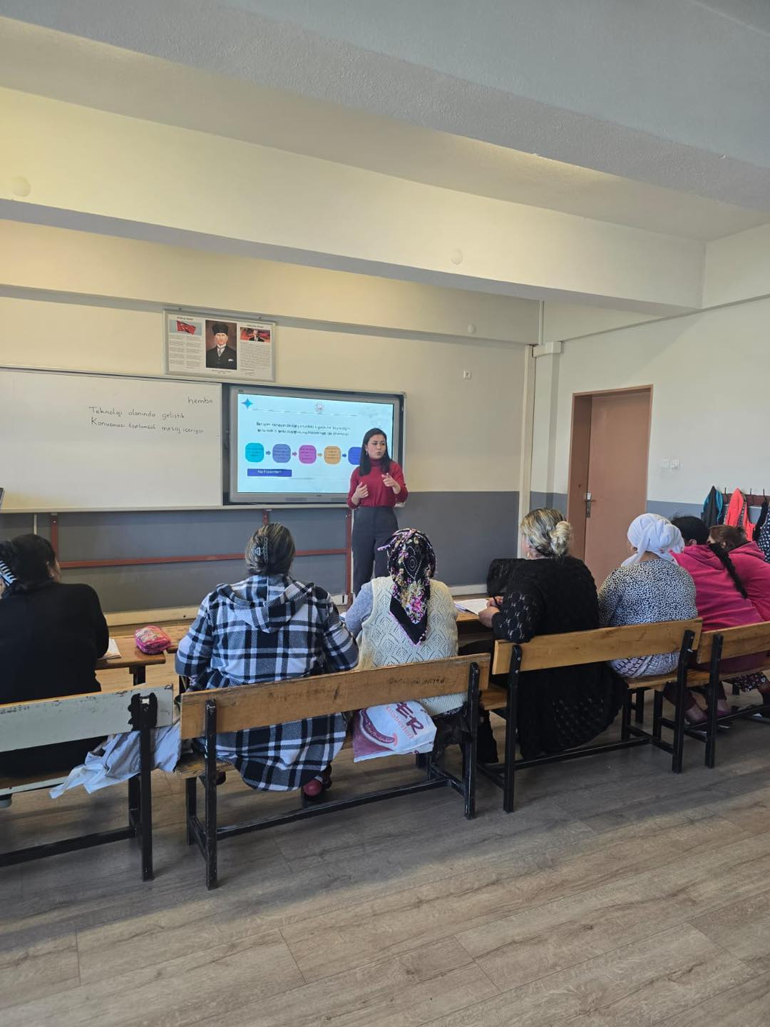Salihli Sosyal Hizmet Merkezimizde görevli Psikolog Tuğba KARAYEL tarafından, Salihli Şehit Ahmet Özsoy Halk Eğitim Merkezi Müdürlüğü bünyesinde eğitim alan Kadın Elbise Dikimi ve I. Kademe Okuma Yazma Eğitim Programı kursiyerlerine yönelik “Aile İçi İletişimin Temel Unsurları” konulu eğitim gerçekleştirildi.