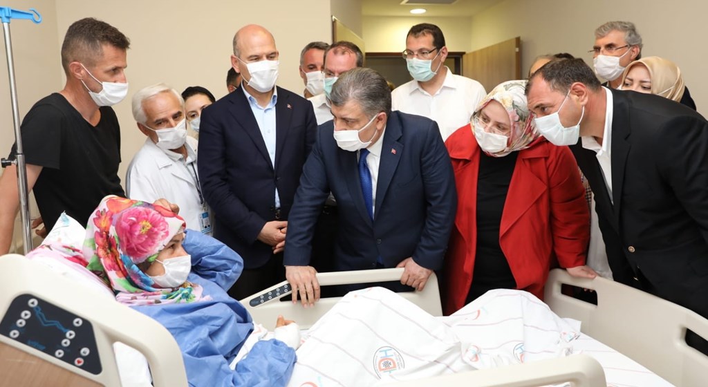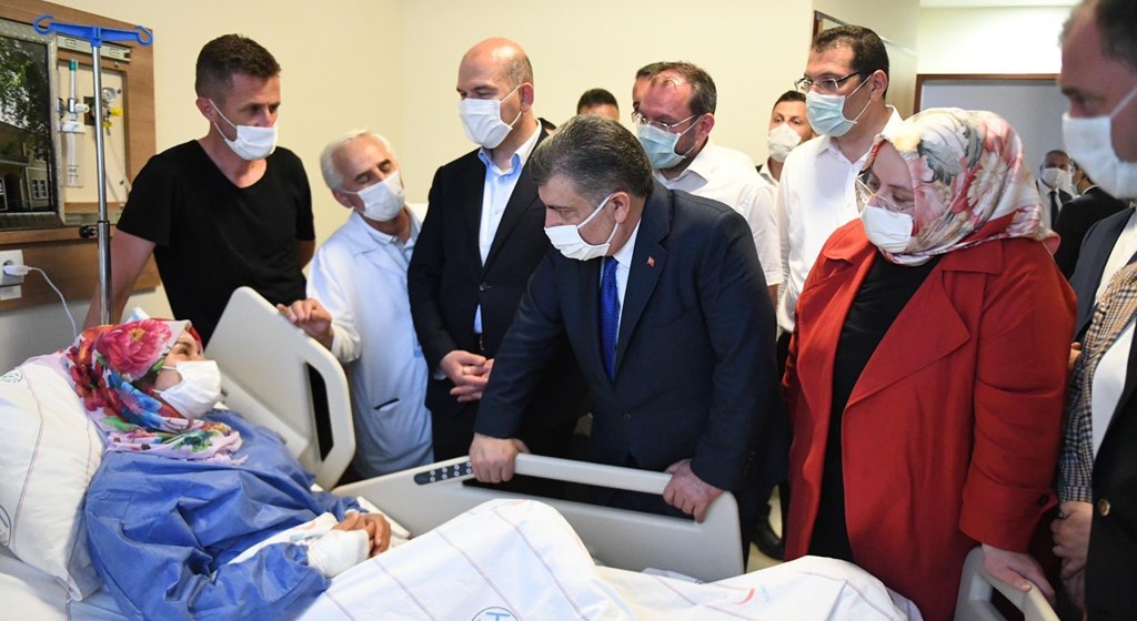 Bakan Selçuk daha sonra İçişleri Bakanı Süleyman Soylu ve Sağlık Bakanı Fahrettin Koca ile birlikte yaralanan işçileri hastanede ziyaret etti.