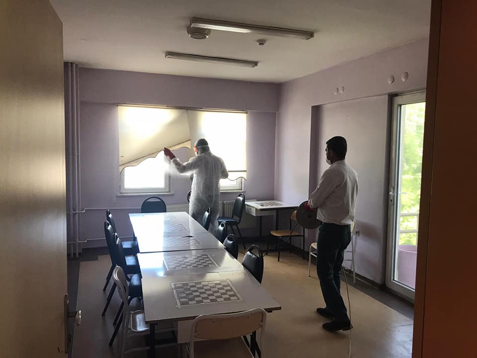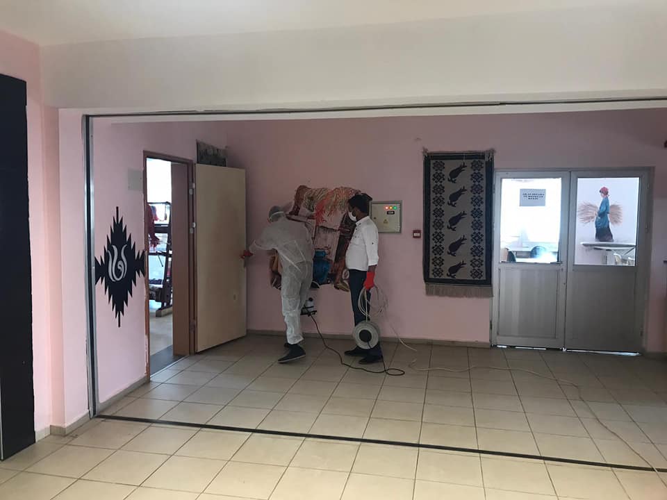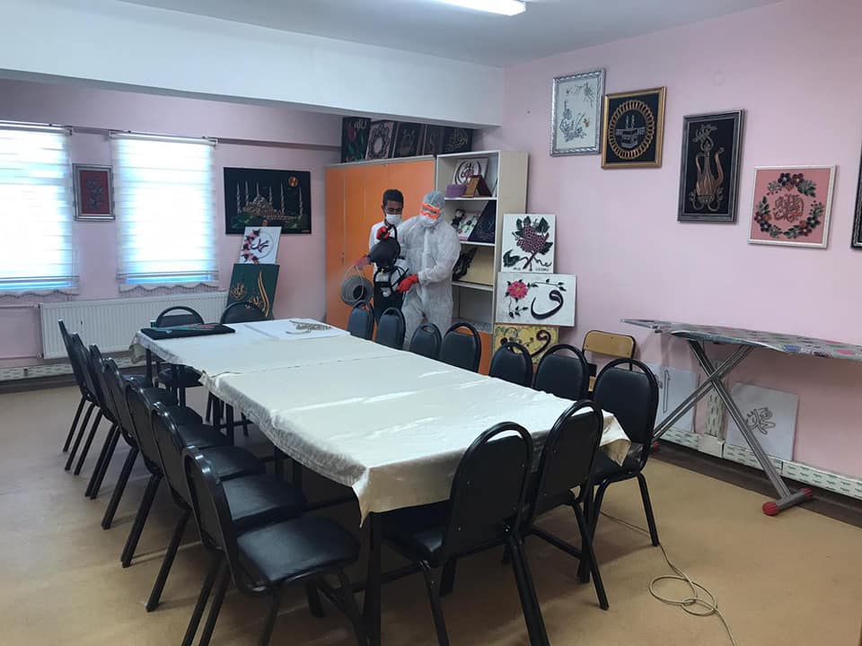 Müdürlüğümüz ek hizmet binasında kadınlara yönelik düzenlediğimiz ancak Covid-19 virüsü nün ülkemizde tespit edilmesi sonrası alınan tedbirler dolayısıyla ara verdiğimiz kursların yakın zamanda başlayacak olması sebebiyle ve kursiyerlerin sağlıklı ortamda eğitim almasını sağlamak amacıyla ek hizmet binamızda dezenfekte işlemleri gerçekleştirilmiştir.