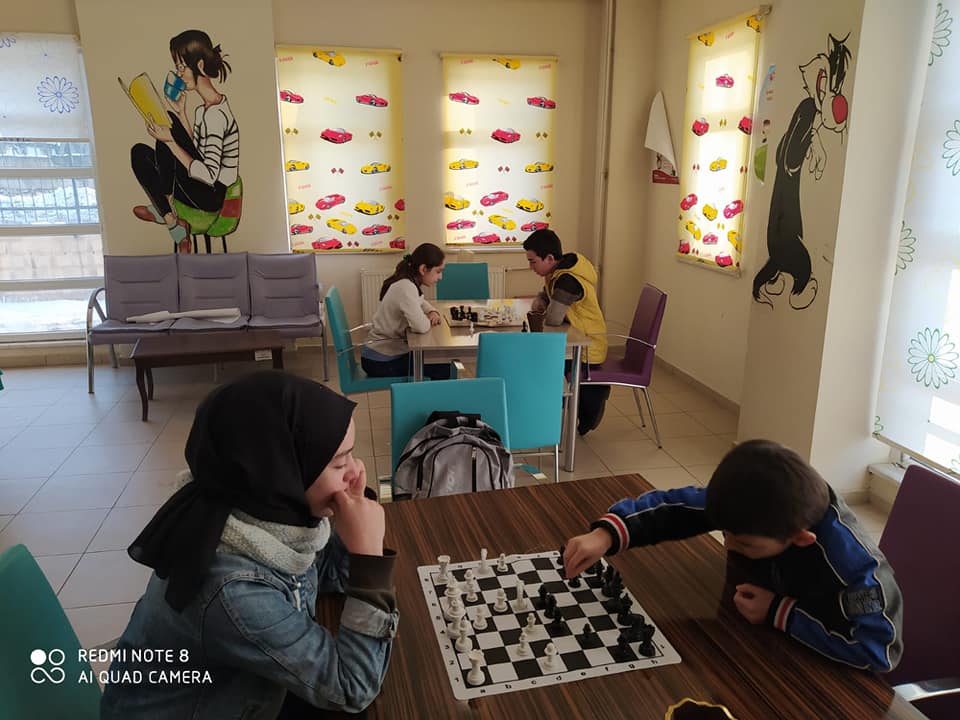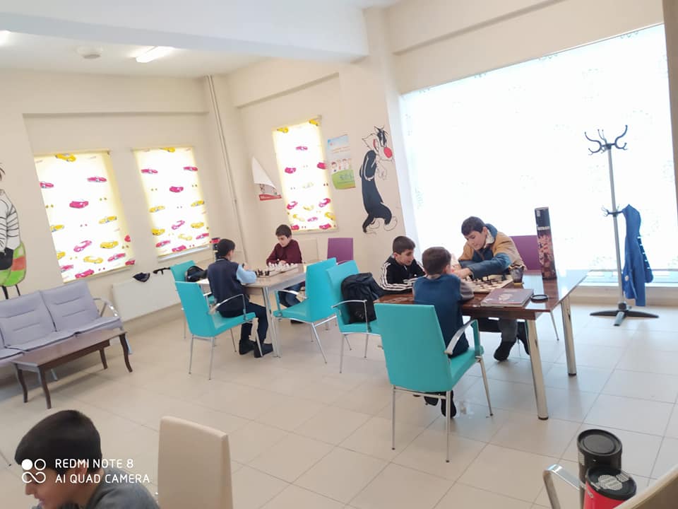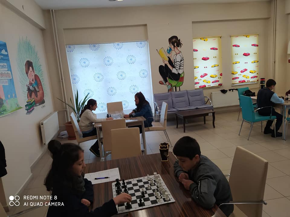 Müdürlüğümüzce çocukların faydalı şekilde ders çalışmaları için ek hizmet binamızda hizmetlerine açılan kütüphanemizde, düşünen bir nesil yetiştirme amacıyla yapılan çalışmalardan satranç yarışmasında birinci olan kardeşimiz satranç takımıyla ödüllendilirmiştir.