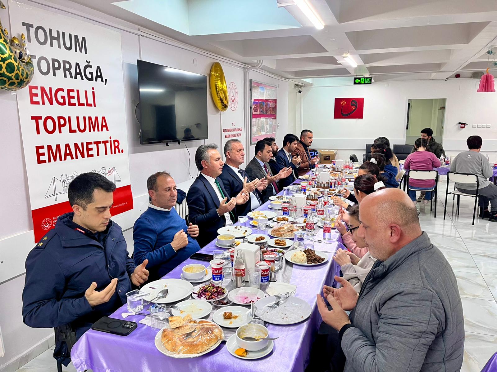 Bugün iftar sofrasında özel bireylerimizle bir araya geldik. İftar programına Altunhisar Belediye Başkanı Sayın Neşet Doygun, İl Müdürümüz Sayın Nurettin Kesler,İl Müdür Yardımcımız Selçuk Hüseyin Demirtaş ve ilçe protokolü katılım sağladılar.