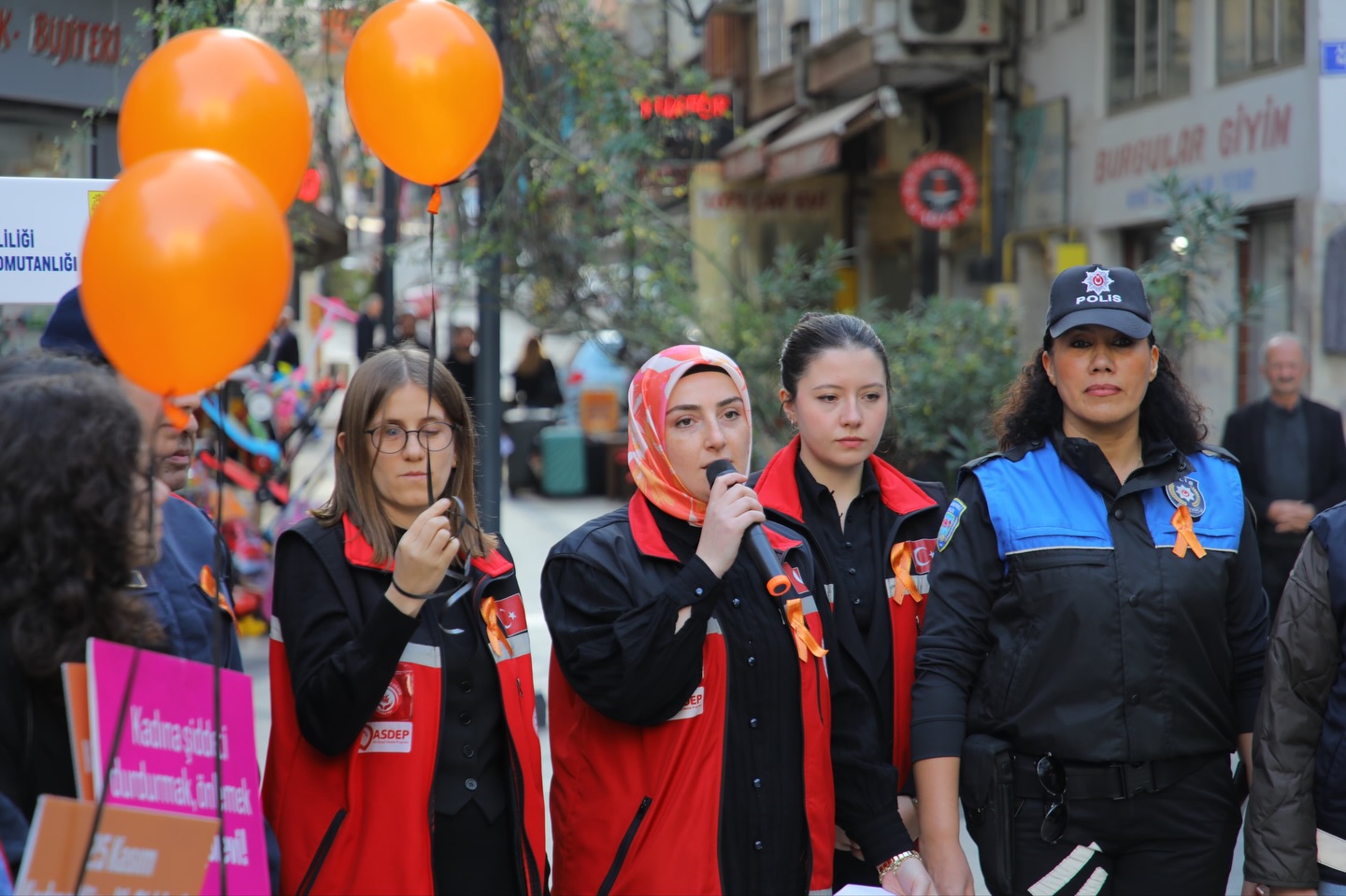 Etkinlik kapsamında kurulan stantta vatandaşlara bilgilendirmeler yapılarak “sessizlik çemberi” oluşturuldu. Ardından, şiddetsiz bir dünyanın sembolü olan turuncu balonlar gökyüzüne bırakıldı. Ayrıca “sessizliği bozan ağaç” temsiline vatandaşlarla birlikte şiddete dikkat çekici notlar asılarak toplumsal duyarlılık güçlendirildi.