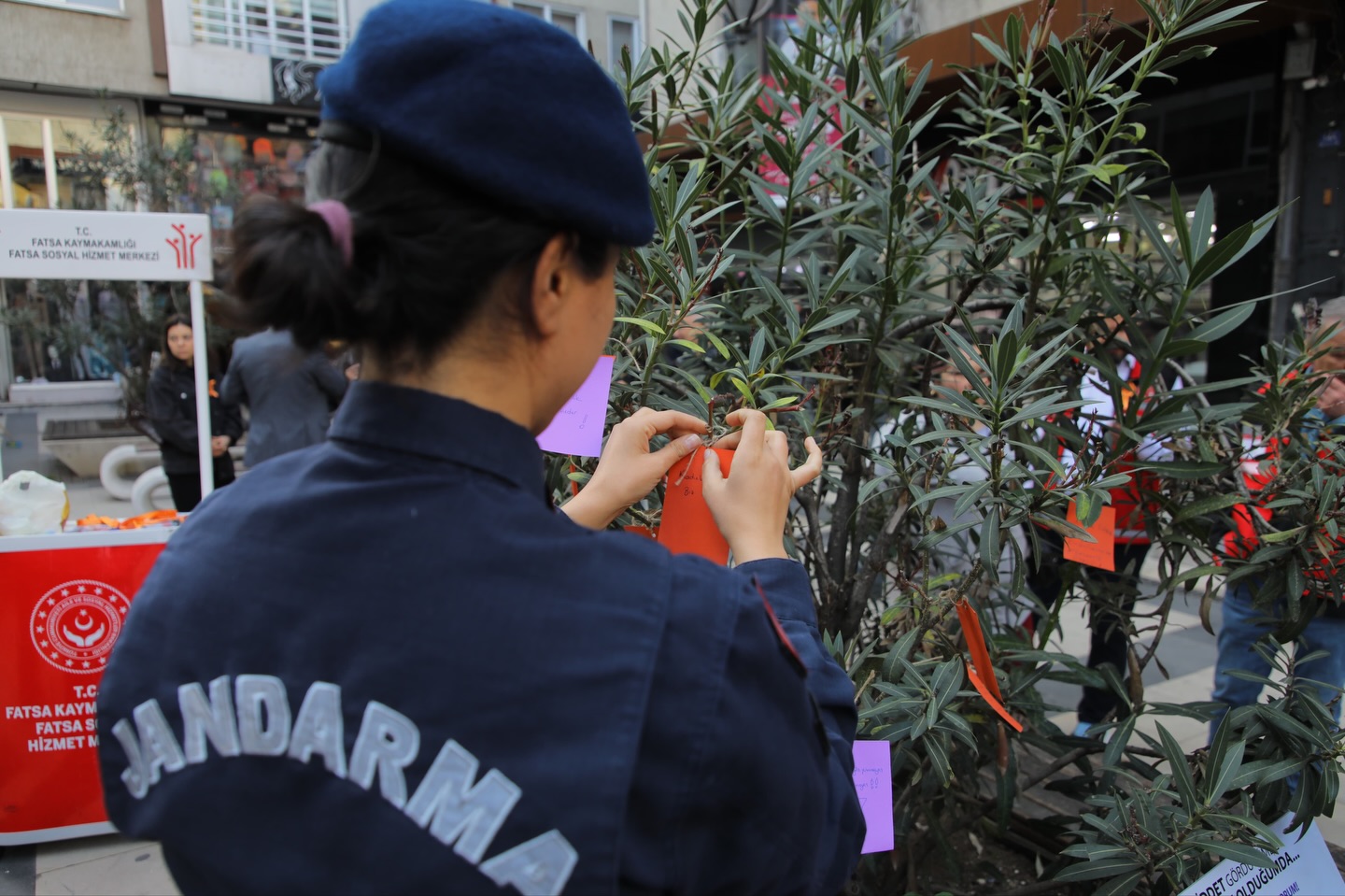 25 Kasım Kadına Yönelik Şiddete Karşı Uluslararası Mücadele Günü kapsamında, Fatsa Kaymakamlığı himayesinde; Fatsa Sosyal Hizmet Merkezi Müdürlüğü koordinasyonunda, Fatsa Belediyesi, Fatsa İlçe Emniyet Müdürlüğü ve Fatsa İlçe Jandarma Komutanlığı iş birliğiyle Plevne Meydanı’nda farkındalık etkinliği düzenlendi.