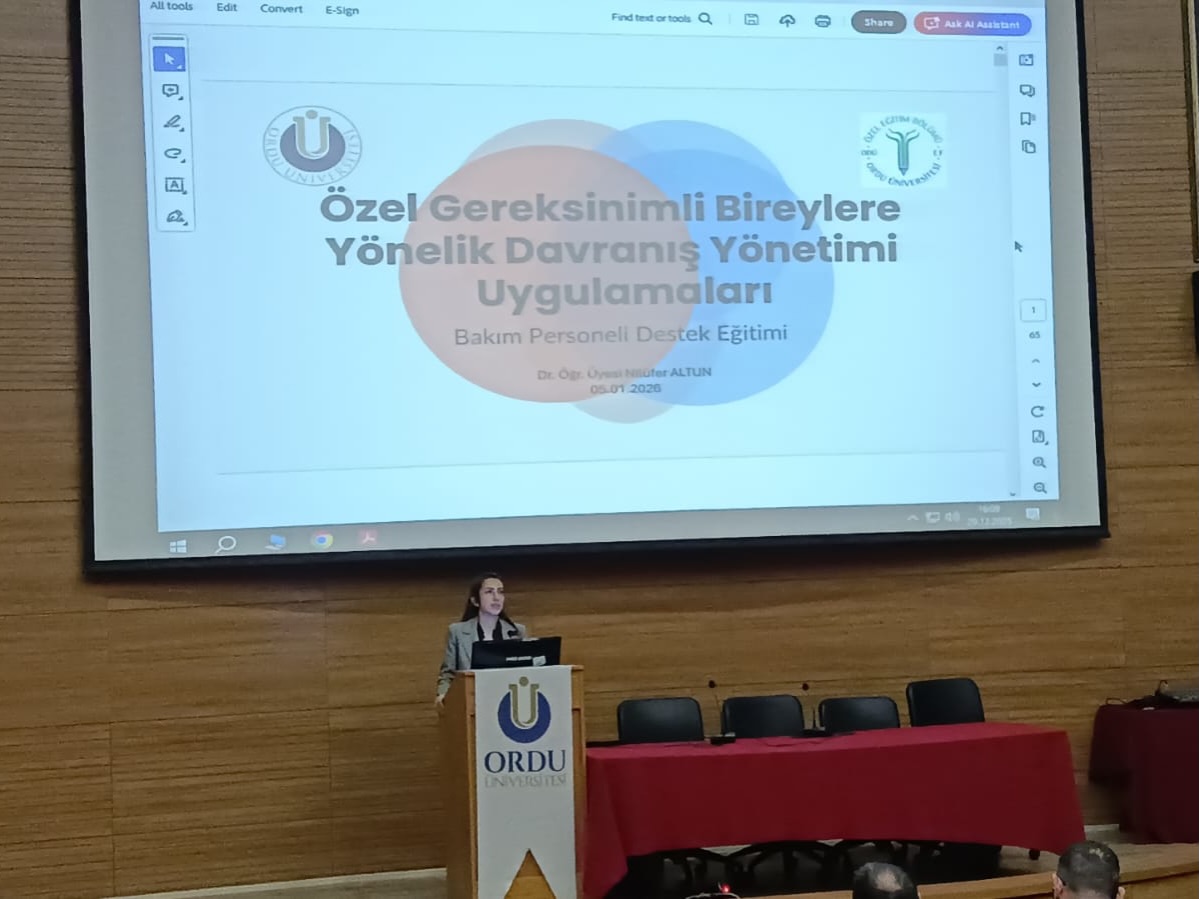 Ordu Üniversitesi Özel Eğitim Bölümü Dr. Öğr. Üyesi Nilüfer ALTUN tarafından verilen eğitimlerde, Özel Gereksinimli Bireylere Yönelik Davranış Yönetimi Uygulamaları ve Davranış Yönetiminde Kullanılabilecek Öz-Düzenleme Stratejileri ele alındı.