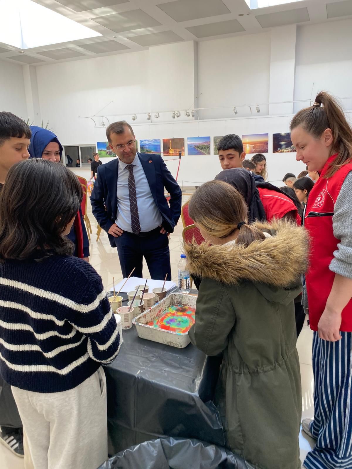 Protokol üyeleri, atölye masalarını tek tek gezerek çocuklarla yakından ilgilendi ve onlarla sohbet etti. Program sonunda çocuklara çeşitli hediyeler takdim edilerek sevinçleri paylaşıldı.