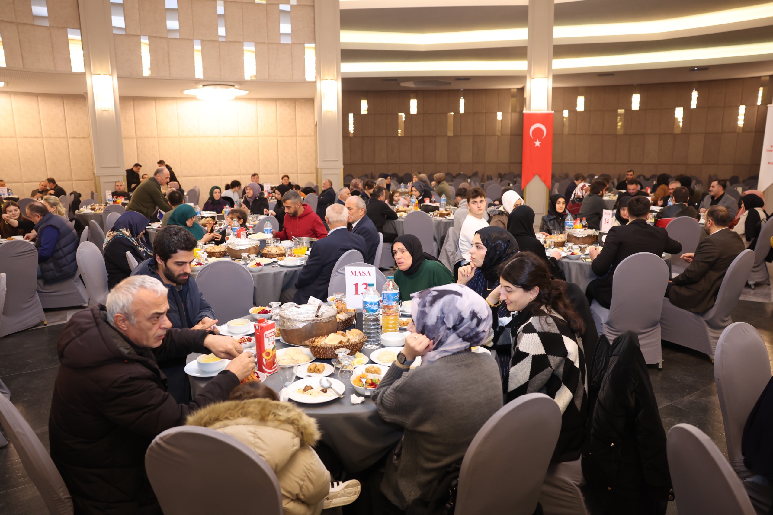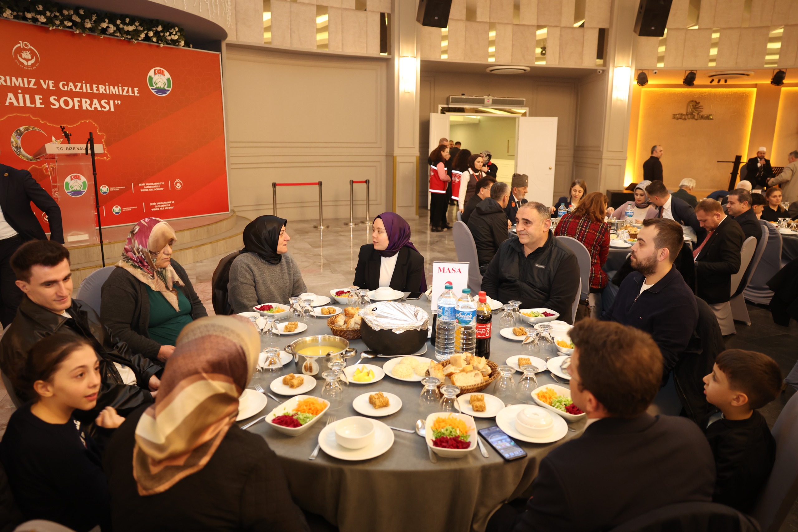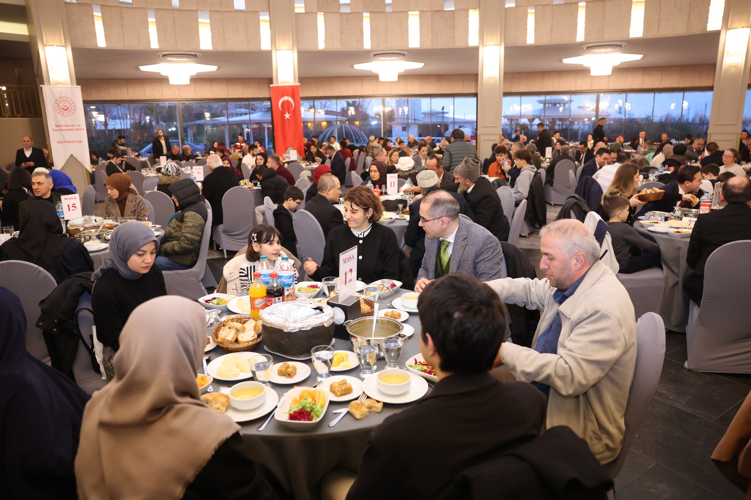 Rize Valiliği himayelerinde, Aile ve Sosyal Hizmetler İl Müdürlüğümüz koordinesinde düzenlenen programda; Ramazan ayının ilk iftarında, aziz şehitlerimizin kıymetli aileleri ve kahraman gazilerimizle aynı sofrada bir araya gelindi. Ramazan ayının manevi atmosferinde gerçekleştirilen buluşmada, birlik ve beraberlik duyguları pekiştirilerek devletimizin şefkati ve milletimizin vefası bir kez daha güçlü şekilde ortaya konuldu.