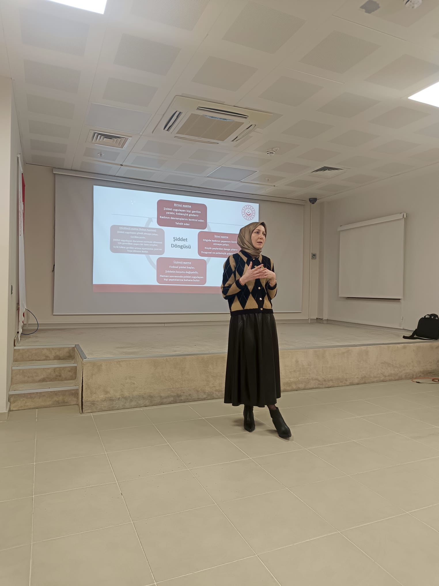Program kapsamında, kadına yönelik şiddetin türleri, şiddetin birey ve toplum üzerindeki etkileri, erken farkındalık, başvuru mekanizmaları ve yasal haklar gibi önemli konularda kapsamlı bilgilendirmelerde bulunulmuştur. Alanında uzman personellerimiz tarafından verilen eğitimde, öğrencilerin bilinç düzeyinin artırılması, şiddetin önlenmesine yönelik farkındalığın güçlendirilmesi ve sağlıklı iletişim becerilerinin geliştirilmesi hedeflenmiştir.