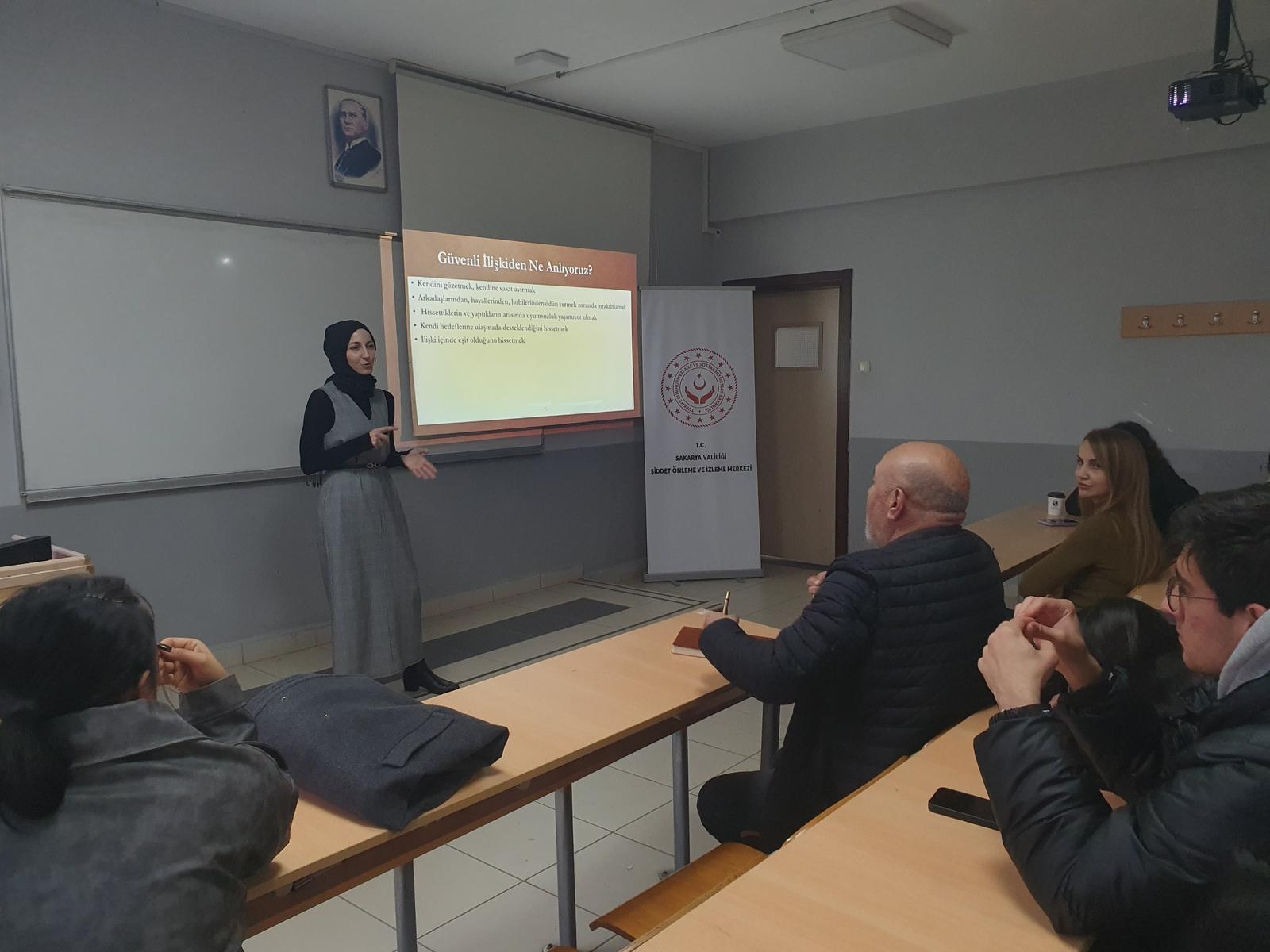 Sakarya Üniversitesi ile iş birliği içerisinde yürütülen Şiddet Önleme Akademisi çalışmaları kapsamında, Gönüllülük Dersleri bünyesinde “Kadına Yönelik Şiddetle Mücadele” konulu kapsamlı bir eğitim programı gerçekleştirilmiştir.