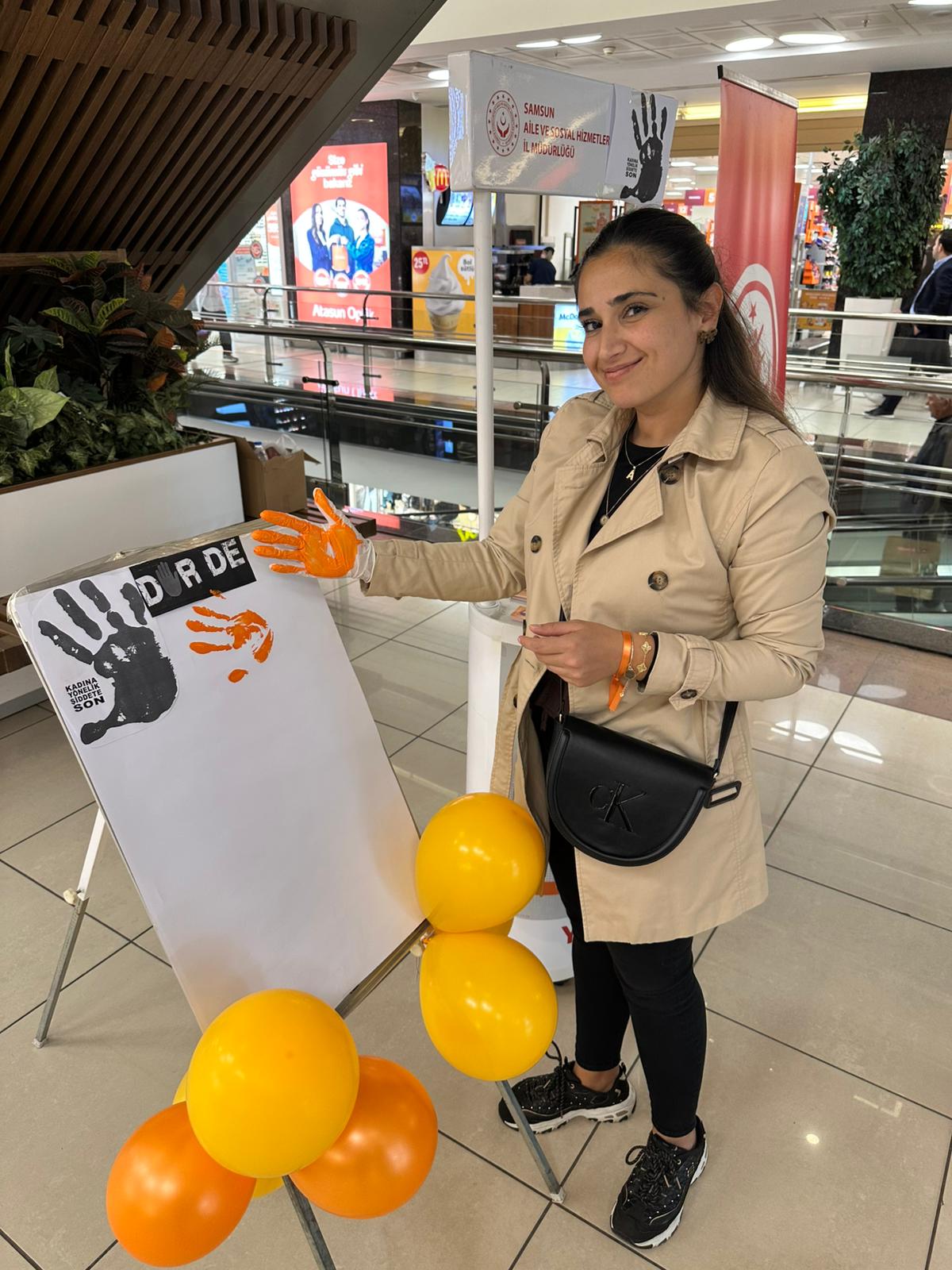 - Atakum Sosyal Hizmet Merkezi, Yeşilyurt AVM’de “Turuncuya Boya – Şiddete Sen de Dur De” temalı farkındalık standı kurdu. Katılımcılar, turuncu simgelerle kadına yönelik şiddete karşı destek verdi.
