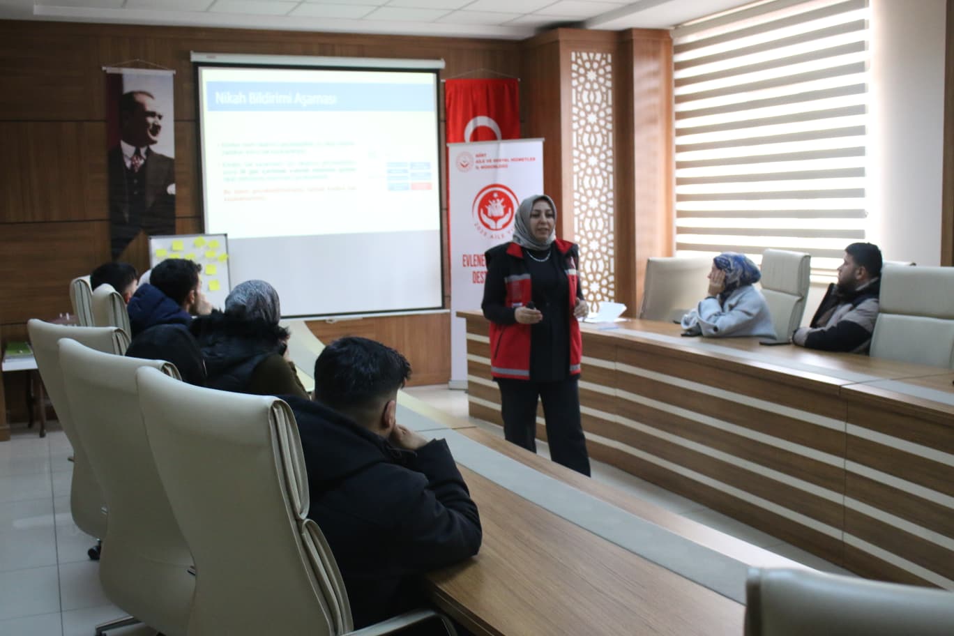 Program kapsamında çiftlere; evlilikte iletişim, aile içi sorumluluklar, sağlıklı ilişki kurma ve evlilik hayatına uyum konularında bilgilendirme yapıldı. Genç çiftlerin bilinçli ve güçlü bir aile yapısı oluşturmalarına katkı sunmayı amaçlayan eğitim programı, katılımcıların yoğun ilgisiyle tamamlandı.