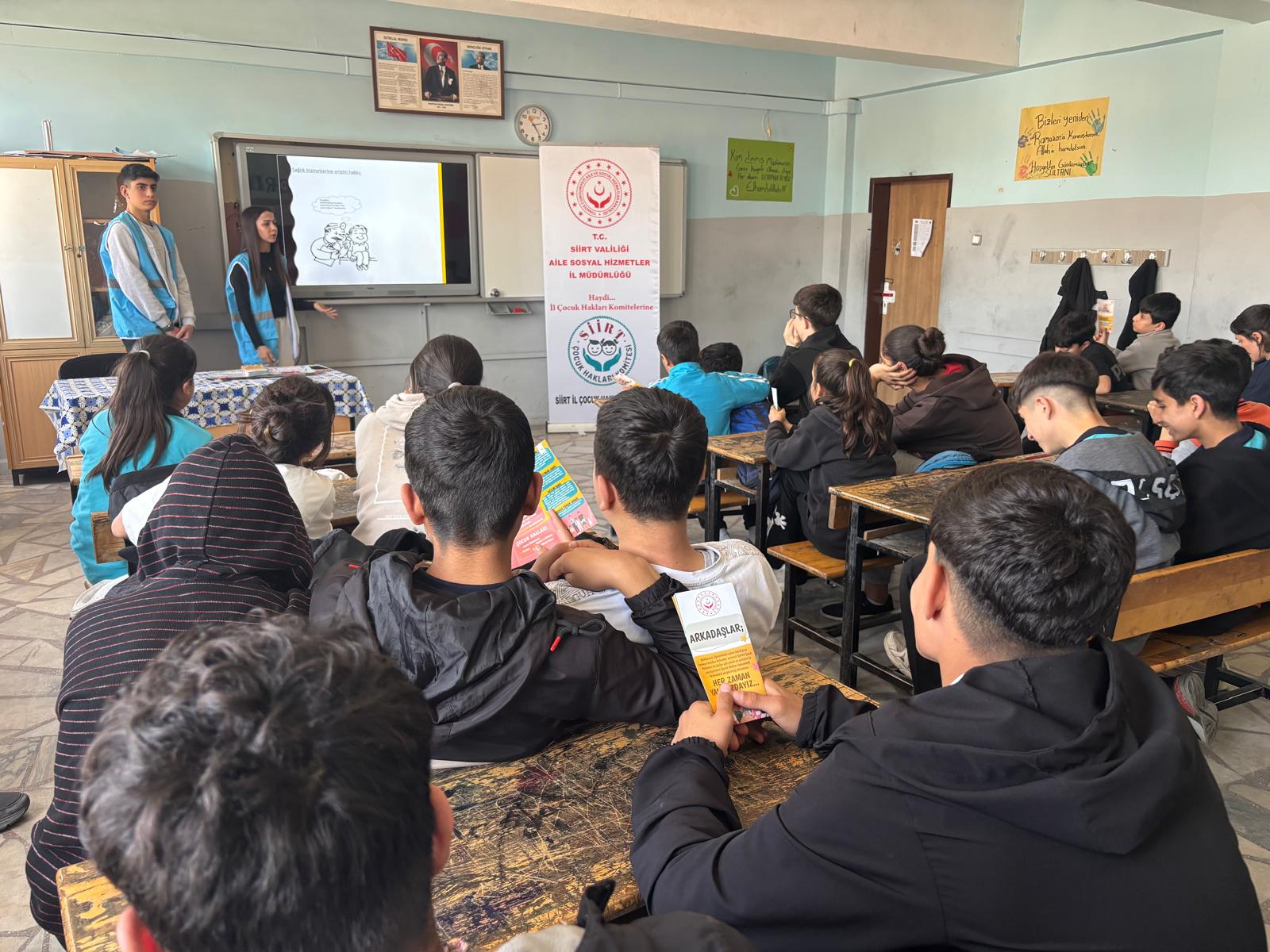 Siirt Çocuk Hakları Komitemiz tarafından, çocuk haklarının tanıtımı ve akran zorbalığına yönelik farkındalık oluşturulması amacıyla, Siirt 75. Yıl Ortaokulu öğrencilerine “akrandan akrana eğitim” gerçekleştirilmiştir.