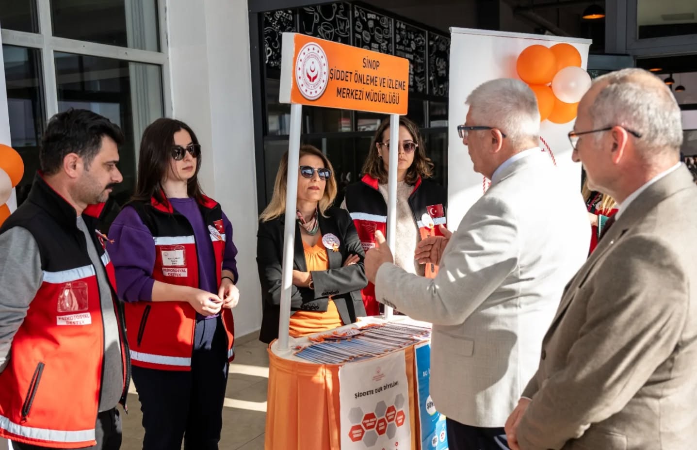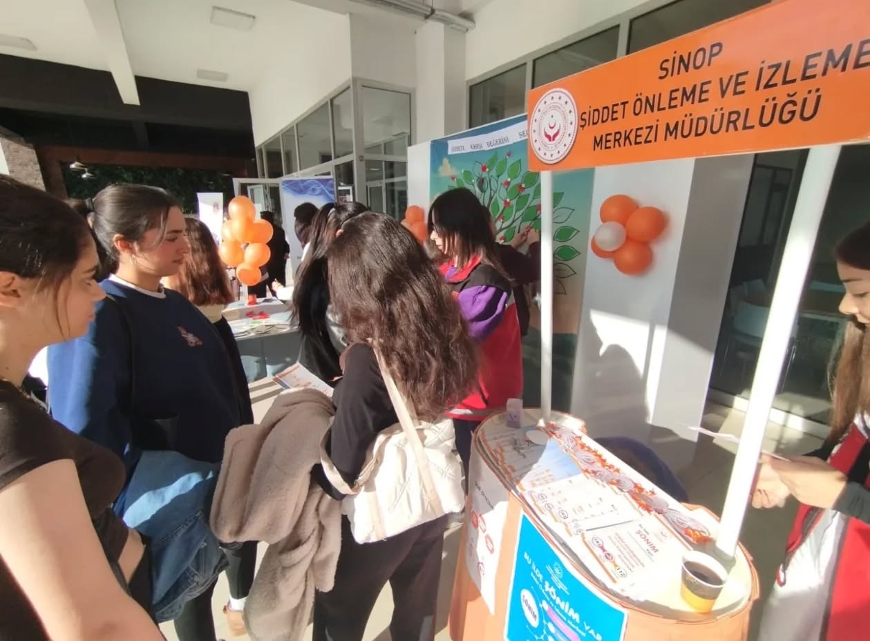 Şiddet Önleme ve İzleme Merkezimiz, Sinop İl Jandarma Komutanlığı, Sinop İl Emniyet Müdürlüğü ve Sinop Üniversitesi Kadın Çalışmaları Uygulama ve Araştırma Merkezi (SİNKAMER) iş birliğiyle, Sinop Üniversitesi Öğrenci Yaşam Merkezi’nde “Turuncu Masa” mottosuyla bir stant kuruldu.