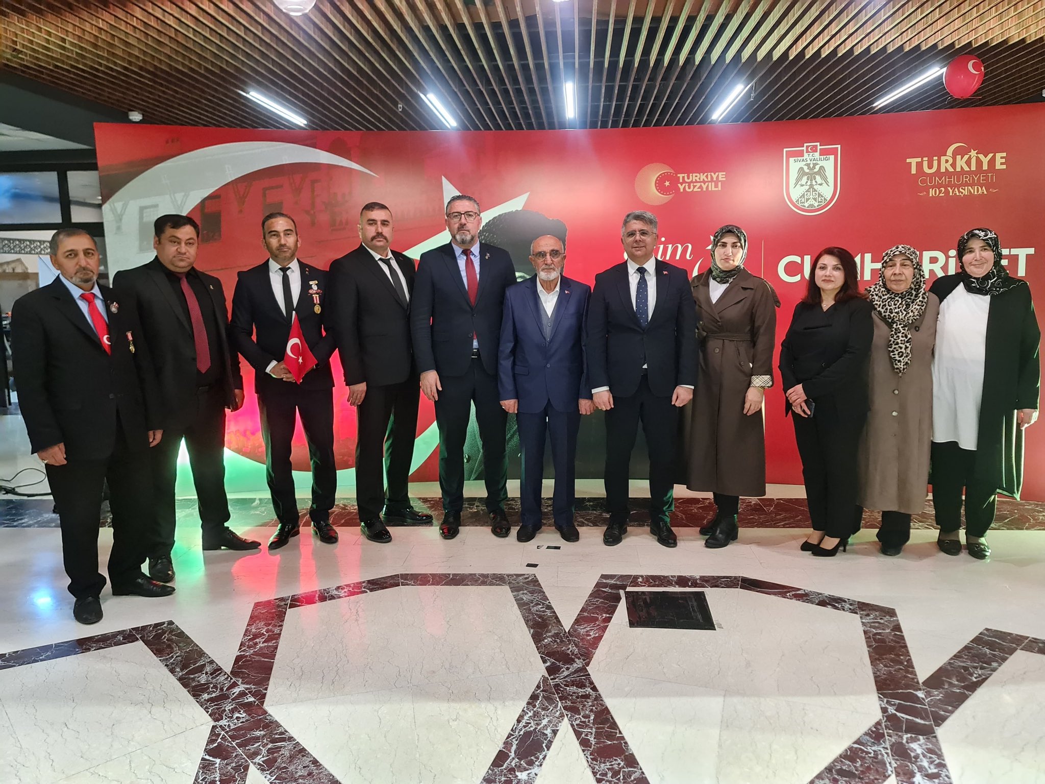 Valimiz Sn. Yılmaz Şimşek ve eşi Çiğdem Olgun Şimşek Hanımefendinin ev sahipliğinde Sivas Valiliği Ek Bina fuaye alanında gerçekleştirilen programa; Garnizon ve 5’inci Piyade Eğitim Tugay Komutanı Tuğgeneral Zeynel Abidin Alptekin, Belediye Başkanı Adem Uzun, Cumhuriyet Başsavcısı Mehmet Akif Aktaş, rektörler, vali yardımcıları, İl Müdürümüz Özgür Kırmızıtaş, kamu kurum ve kuruluşlarının müdürleri, sivil toplum kuruluşu temsilcileri ile çok sayıda davetli katıldı.