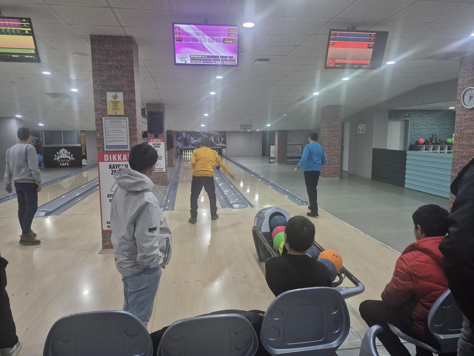 Sonra Hedef Bowling: Eğlence bowling salonunda devam etti! Birlikte atış yapmanın, her devrilen labutta birlikte sevinmenin ve kaliteli zaman paylaşmanın keyfini çıkardılar.