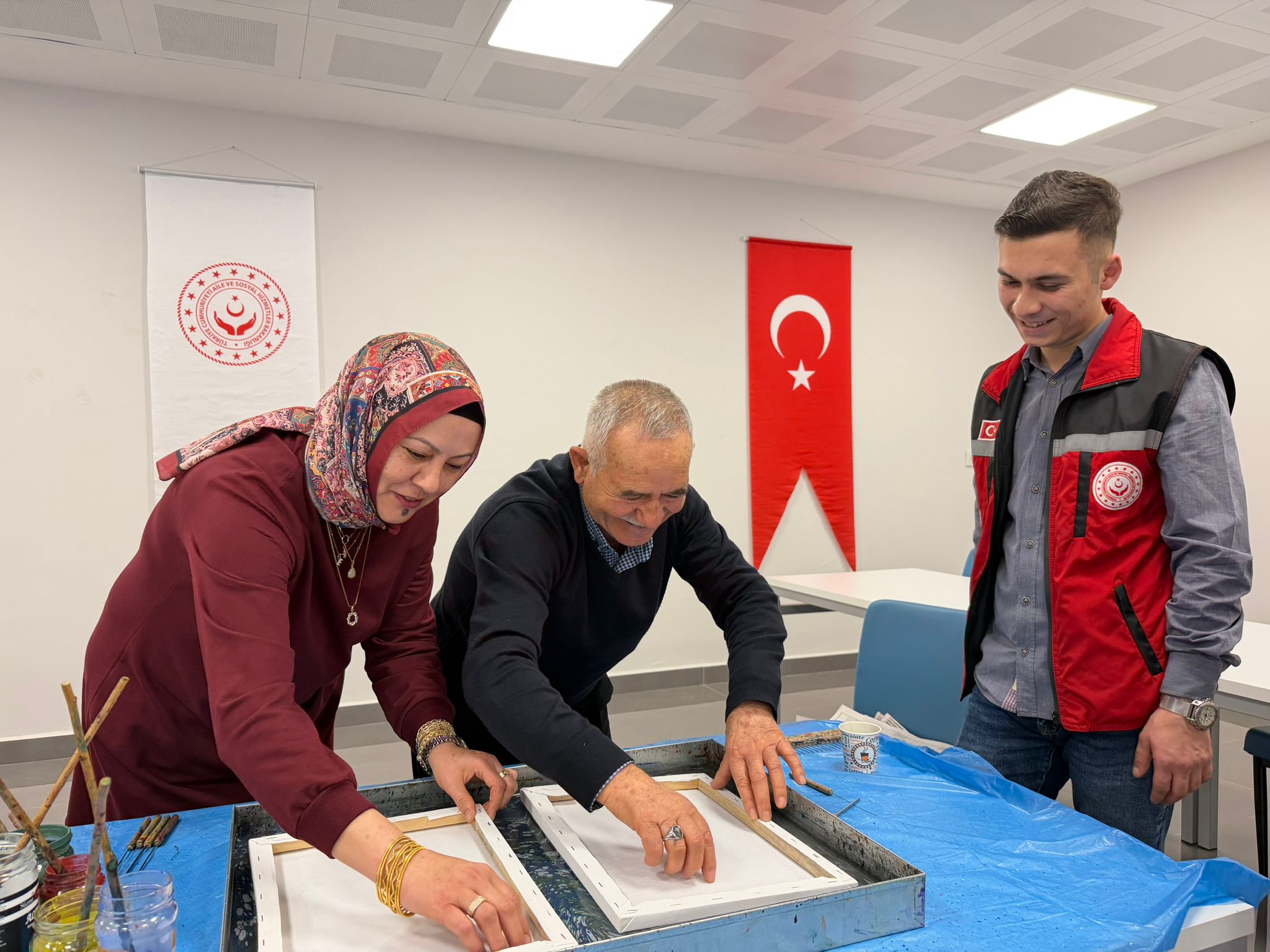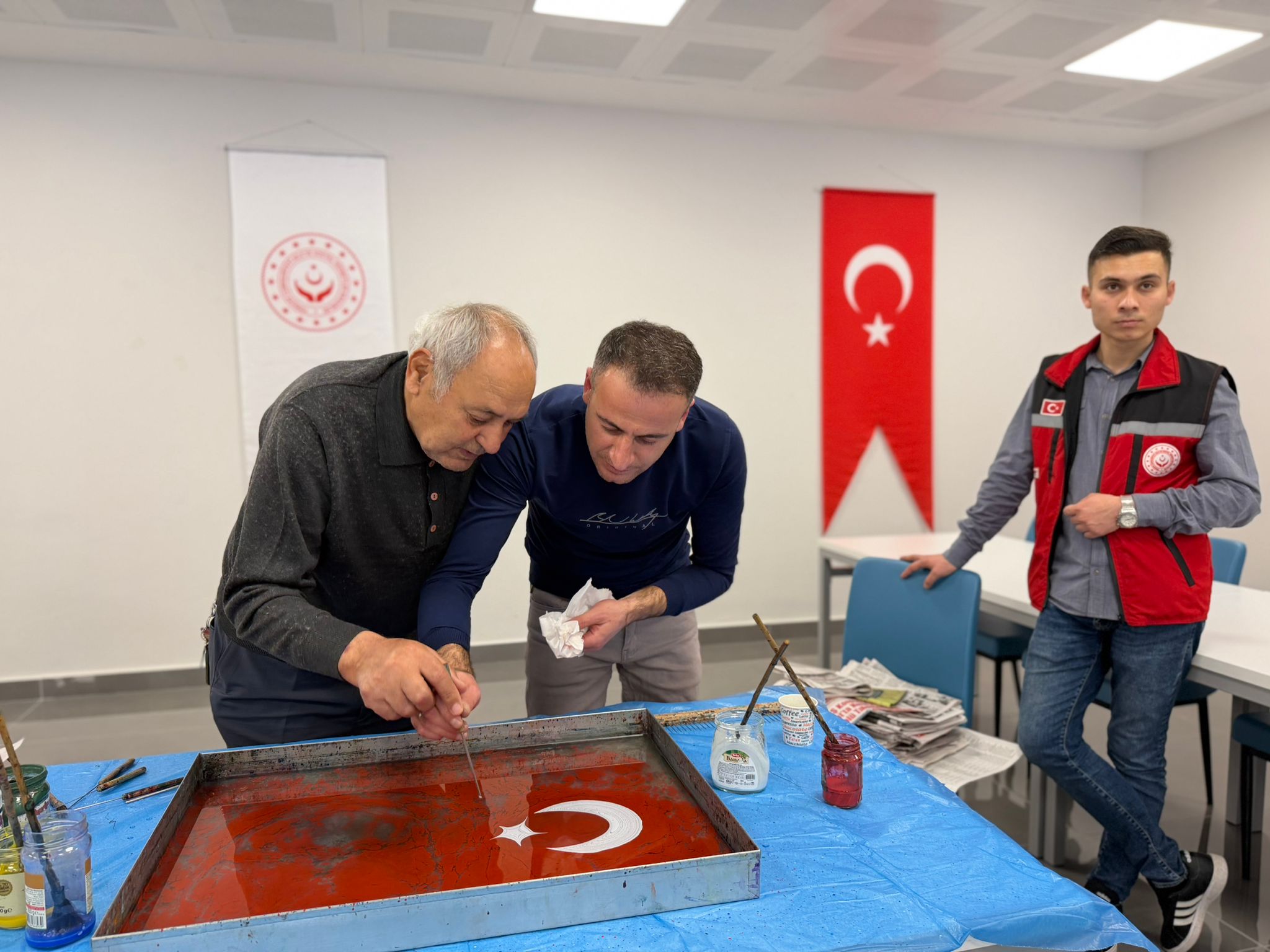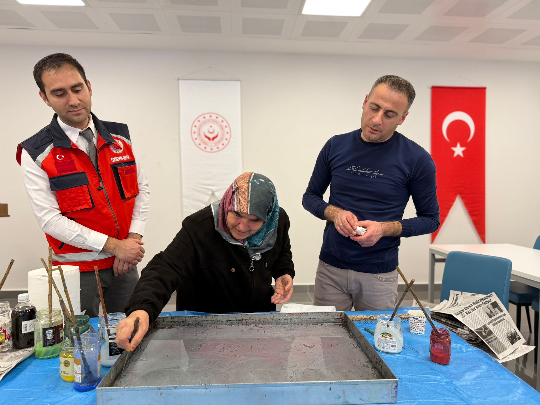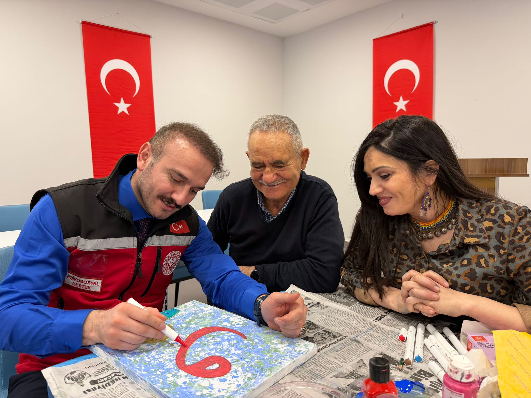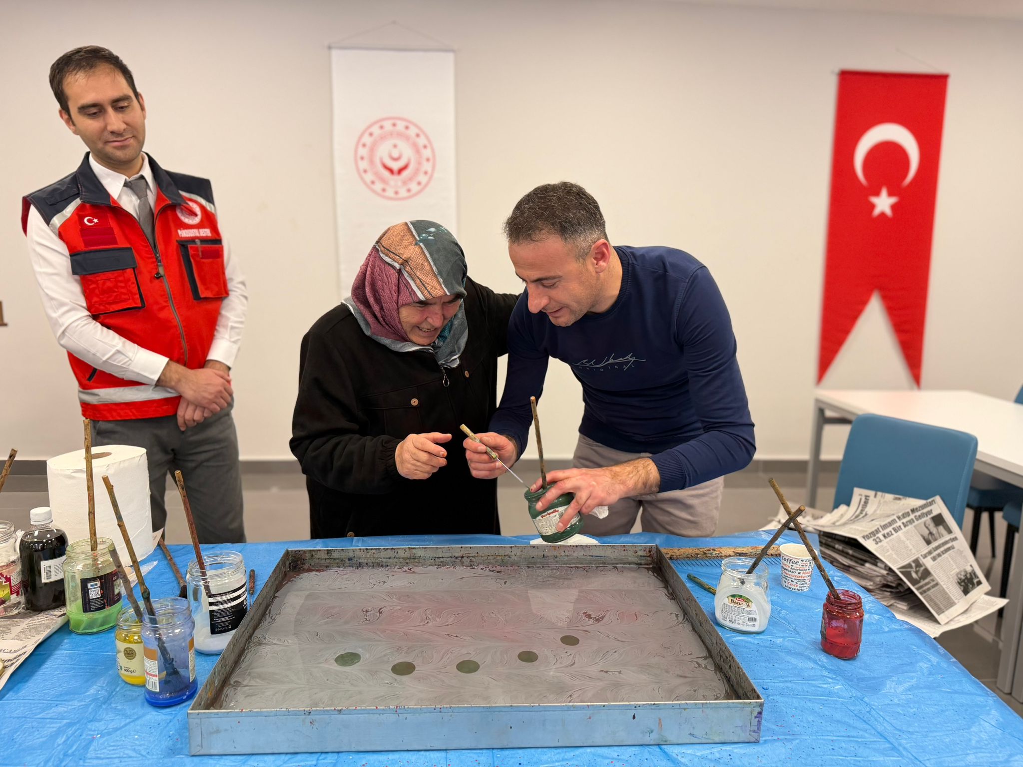 Şehit yakınlarımız, gazilerimiz ve gazi yakınlarımız; suyun üzerine bıraktıkları renklerle sadece sanat yapmadılar, aynı zamanda yaşanmışlıklarını ve duygularını şifalandırdılar. Ebru teknelerinin başında, sabırla ve sevgiyle yaraları sarmaya, sanatın iyileştirici gücüne tutunmaya çalıştık.