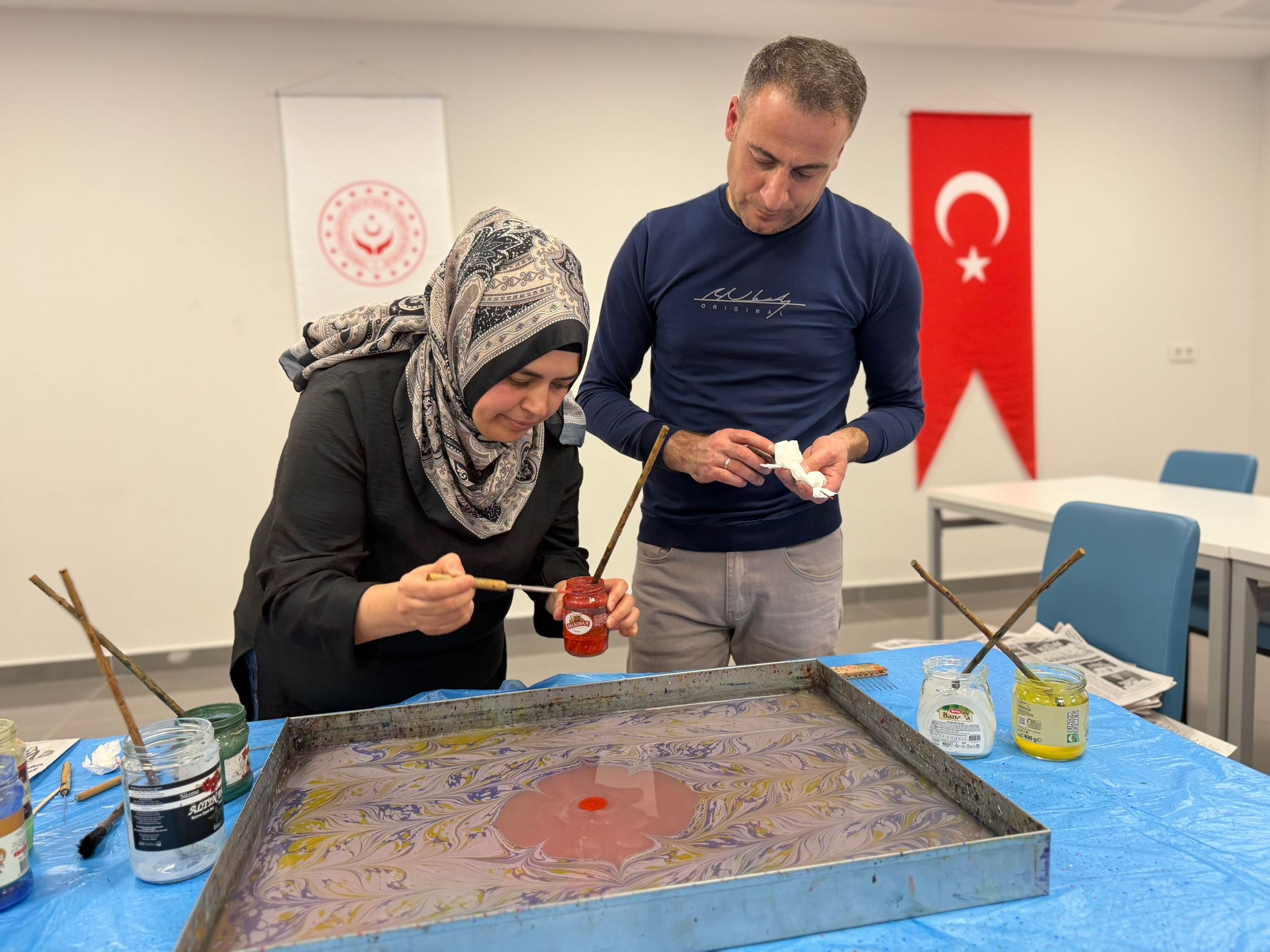 Sanata Teşvik ve Sanatla Yaşam Programı” kapsamında, İl Müdürlüğümüz tarafından düzenlenen Ebru Sanatı kursumuzda bir araya geldik.