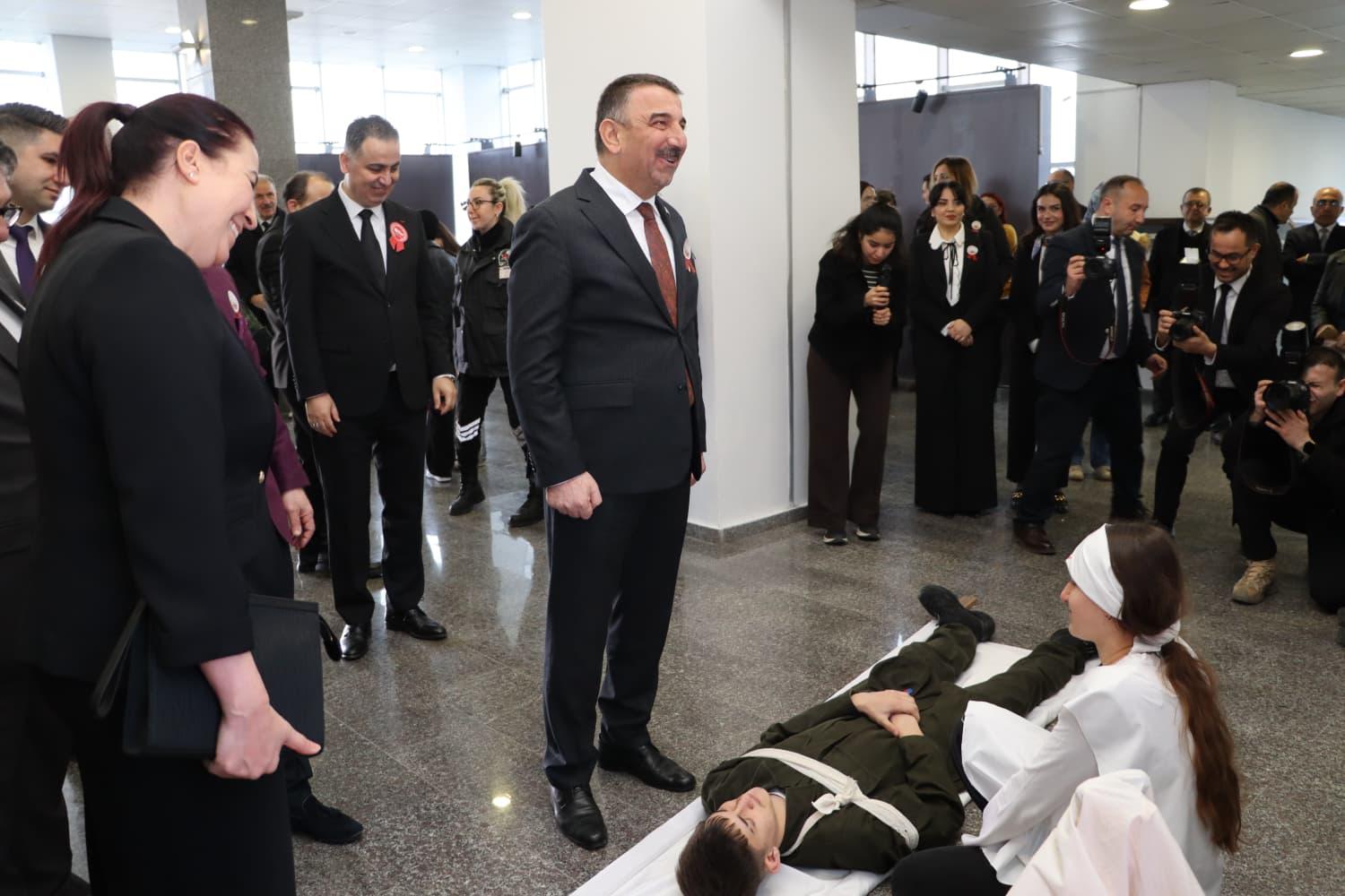 Sergi ziyaretinin ardından, Erdemir Anadolu Lisesi öğretmen ve öğrencileri tarafından hazırlanan “Mektuplarla Çanakkale” oratoryosu izlenmiştir.