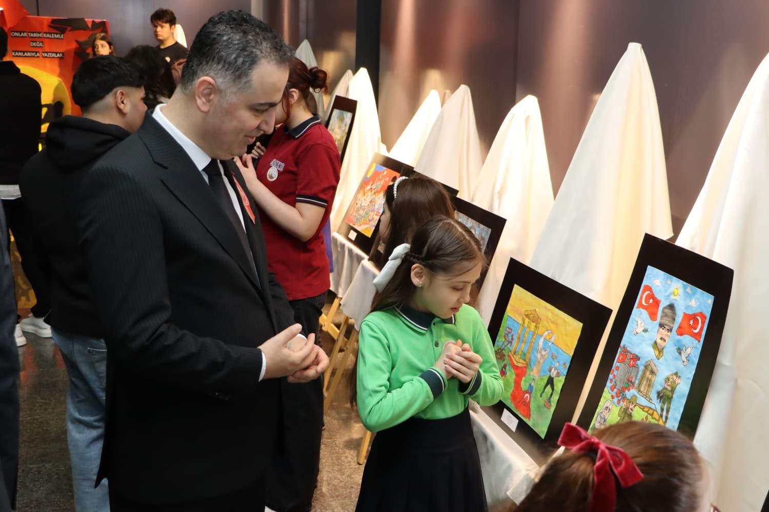 Program kapsamında; İl Milli Eğitim Müdürlüğü tarafından hazırlanan “Bir Destandır Çanakkale” temalı resim, şiir ve kompozisyon yarışmasında dereceye giren öğrencilerin eserlerinden oluşan serginin açılışı gerçekleştirildi.