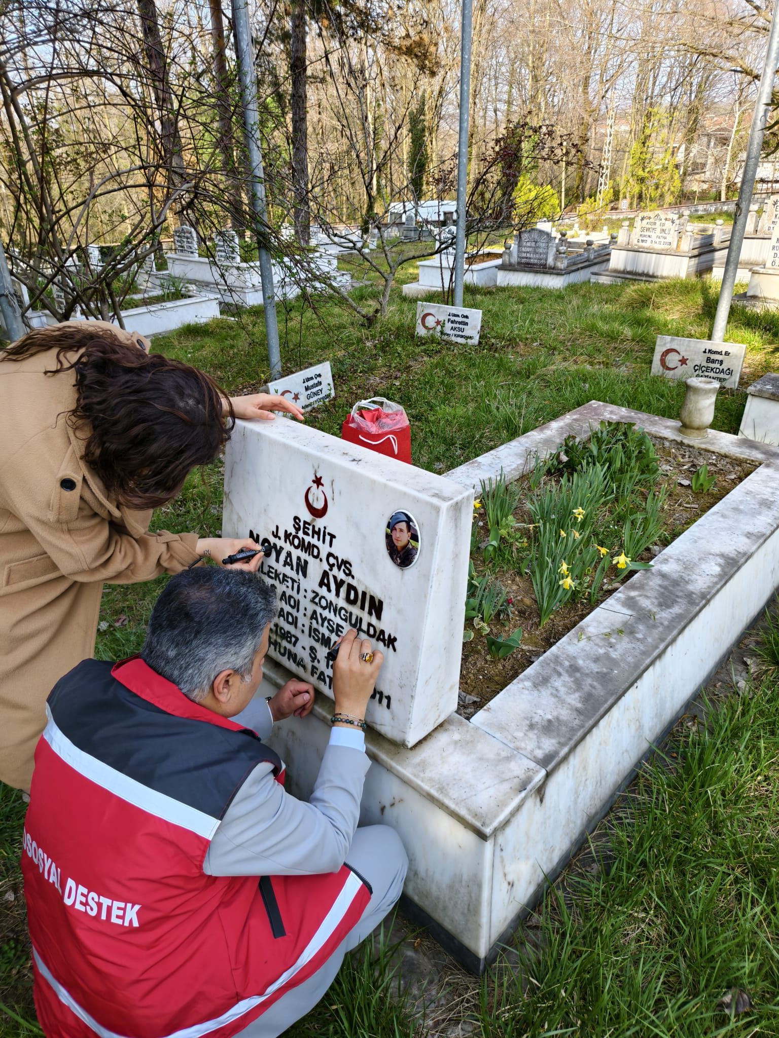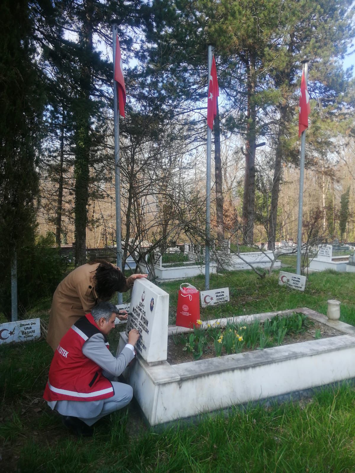 Gerçekleştirilen ziyaret kapsamında, şehitlerimiz dualarla yâd edilmiş; kabirleri başında saygı ve minnet duygularımız ifade edilmiştir. Ayrıca, silinmiş olan kabir yazıları yenilenmiş ve sancak değişimleri gerçekleştirilmiştir.