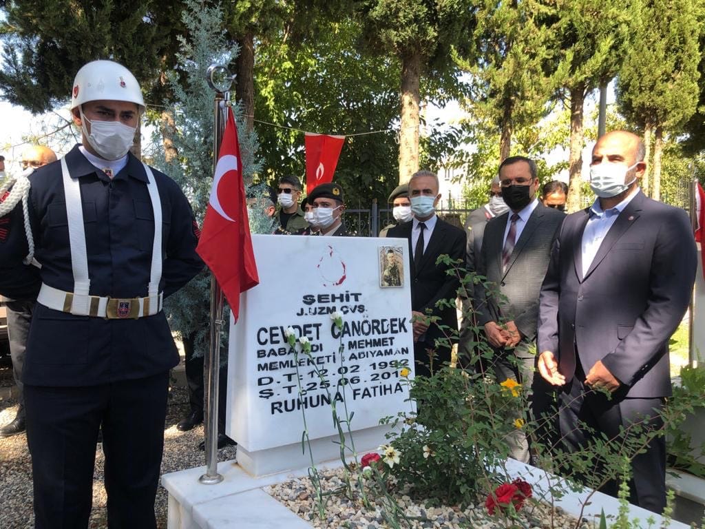 Çelenk töreni sonrası Valimiz Sayın Mahmut ÇUHADAR ve İl Protokolümüz şehitliği ziyaret edip karanfil bıraktılar. Şehitlik ziyaretinde İl Müftüsü Mehmet TAŞCI tarafından vatan uğruna can veren kahraman şehitlerimiz için Kur'an-ı Kerim okunarak dua edildi.