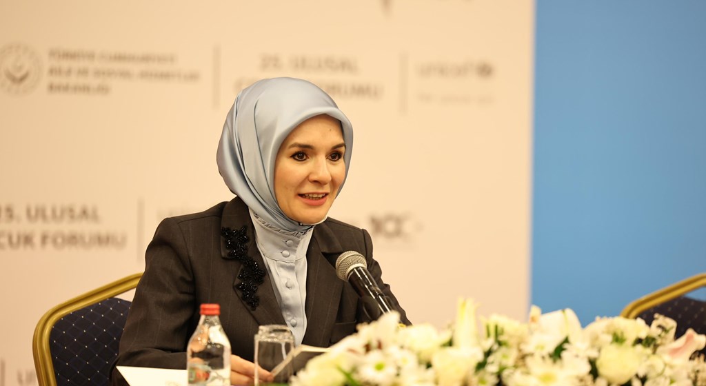 "Bu anlamda çocukların kendilerini ilgilendiren alanlarda karar alma süreçlerine katılmalarını sağlamak politika yapıcılar olarak bizlerin en temel vazifelerinden biridir. Bizim için en değerli miras, hiç şüphesiz çocuklarımıza barış, güven ve huzur dolu bir dünya bırakmaktır. Fakat bugün dünyanın farklı coğrafyalarında çocuklar, savaş, çatışma, yoksullukla mücadele etmek zorunda kalıyor. En temel haklarından mahrum bir şekilde, umut dolu bir geleceğin hayalini bile kuramaz hale geliyor.
