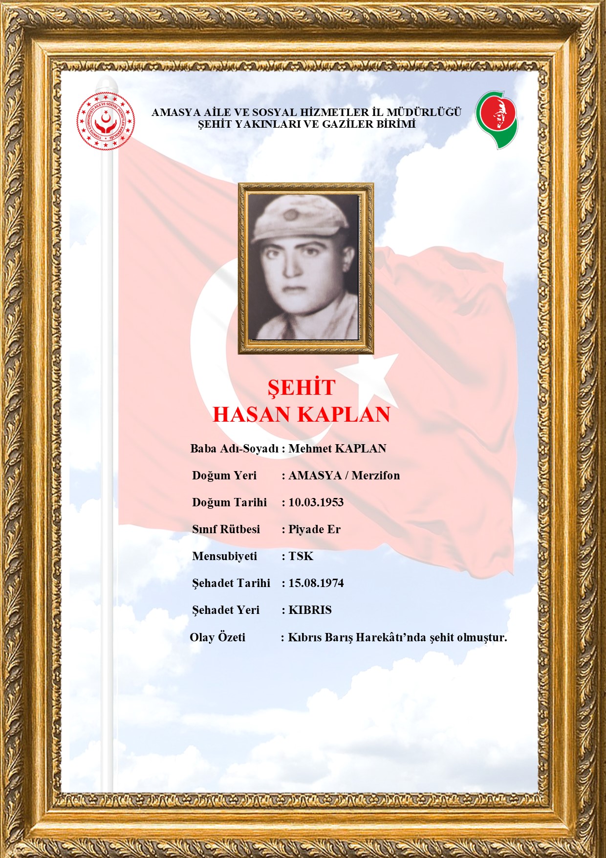 aile.gov.tr --- /amasya/sehitlerimiz/hasan-kaplan ---- Hasan KAPLAN