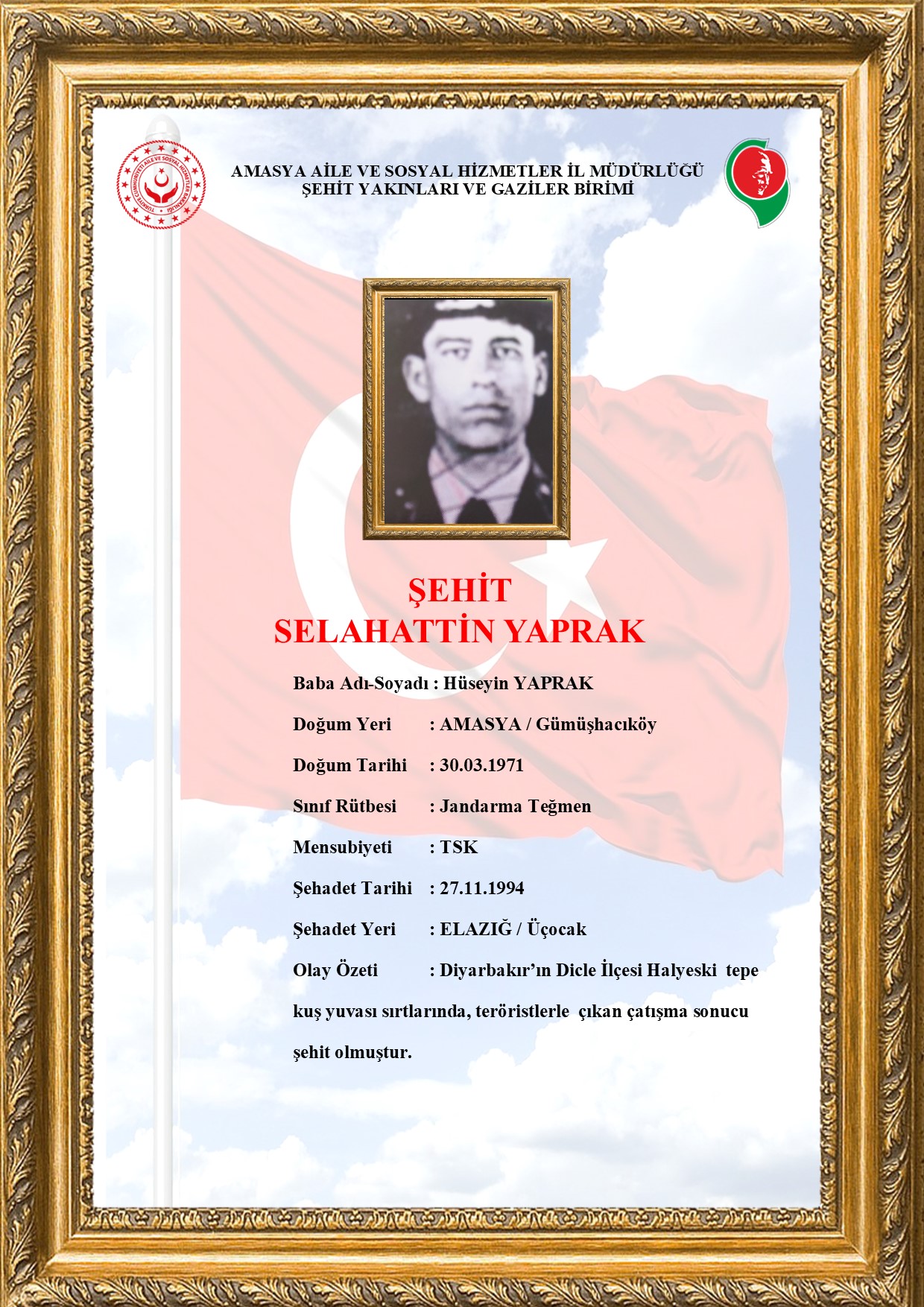 aile.gov.tr --- /amasya/sehitlerimiz/selahattin-yaprak ---- Selahattin YAPRAK