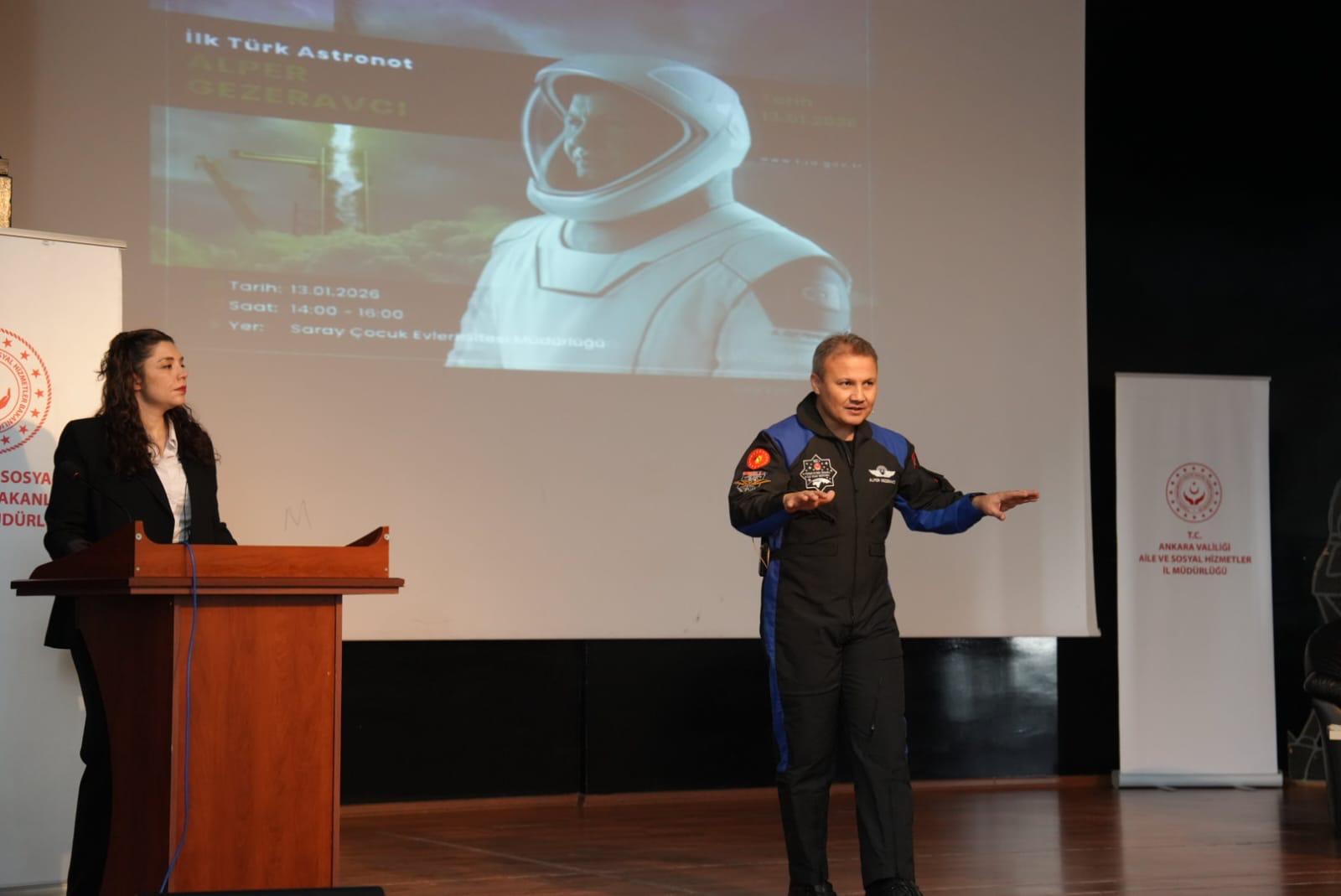 Türkiye’nin ilk astronotu Alper GEZERAVCI, Saray Çocuk Evleri Sitesi’nde çocuklarla unutulmaz bir buluşma gerçekleştirdi. Pursaklar Kaymakamı Sayın Aziz Üzeyir ÖZEREN ve İl Müdürümüz Sayın Cüneyd ÖZDEMİR’in de katıldığı programda, çocuklarımız uzayın gizemli dünyasına yolculuk yaptı.