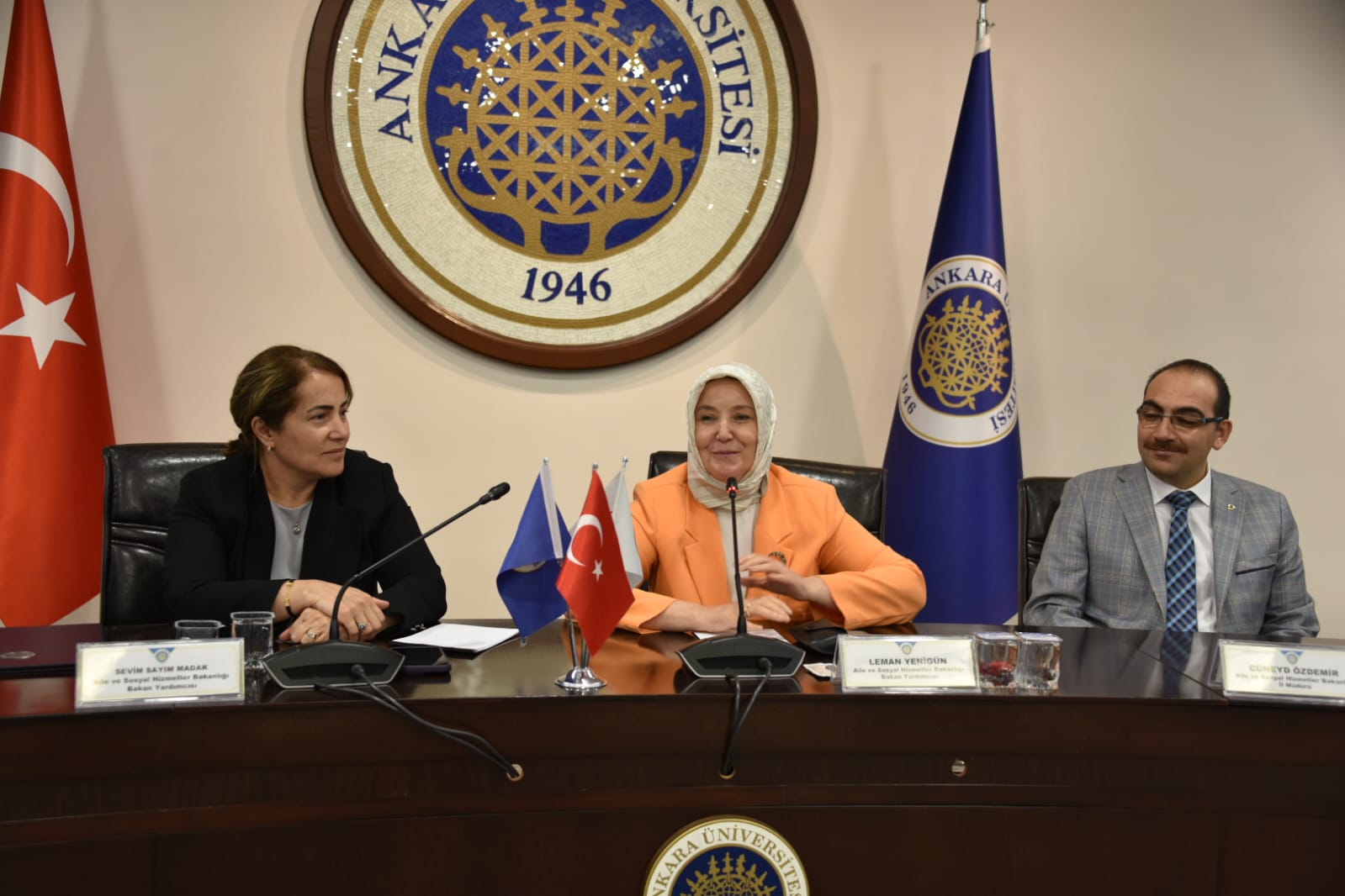 İl Müdürlüğümüz ile Ankara Üniversitesi bünyesinde Tıp Fakültesi, Sağlık Bilimleri Fakültesi ve Yaşlılık Araştırma ve Uygulama Merkezi (YAŞAM) arasında eğitim, araştırma ve hizmet sunumuna ilişkin “İş Birliği Protokolü İmza Töreni” Bakan Yardımcılarımız Sayın Dr. Sevim SAYIM MADAK ve Sayın Leman YENİGÜN, Ankara Üniversitesi Rektörü Sayın Prof. Dr. Necdet ÜNÜVAR ile İl Müdürümüz Sayın Cüneyd ÖZDEMİR’in katılımlarıyla düzenlendi.
