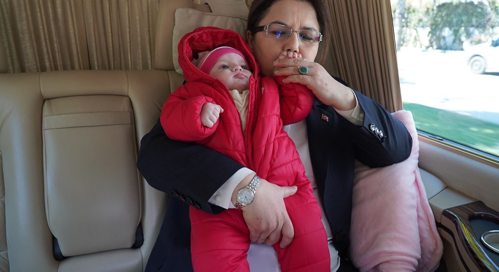 Bebeği Adana’da Bakan Yanık karşıladı