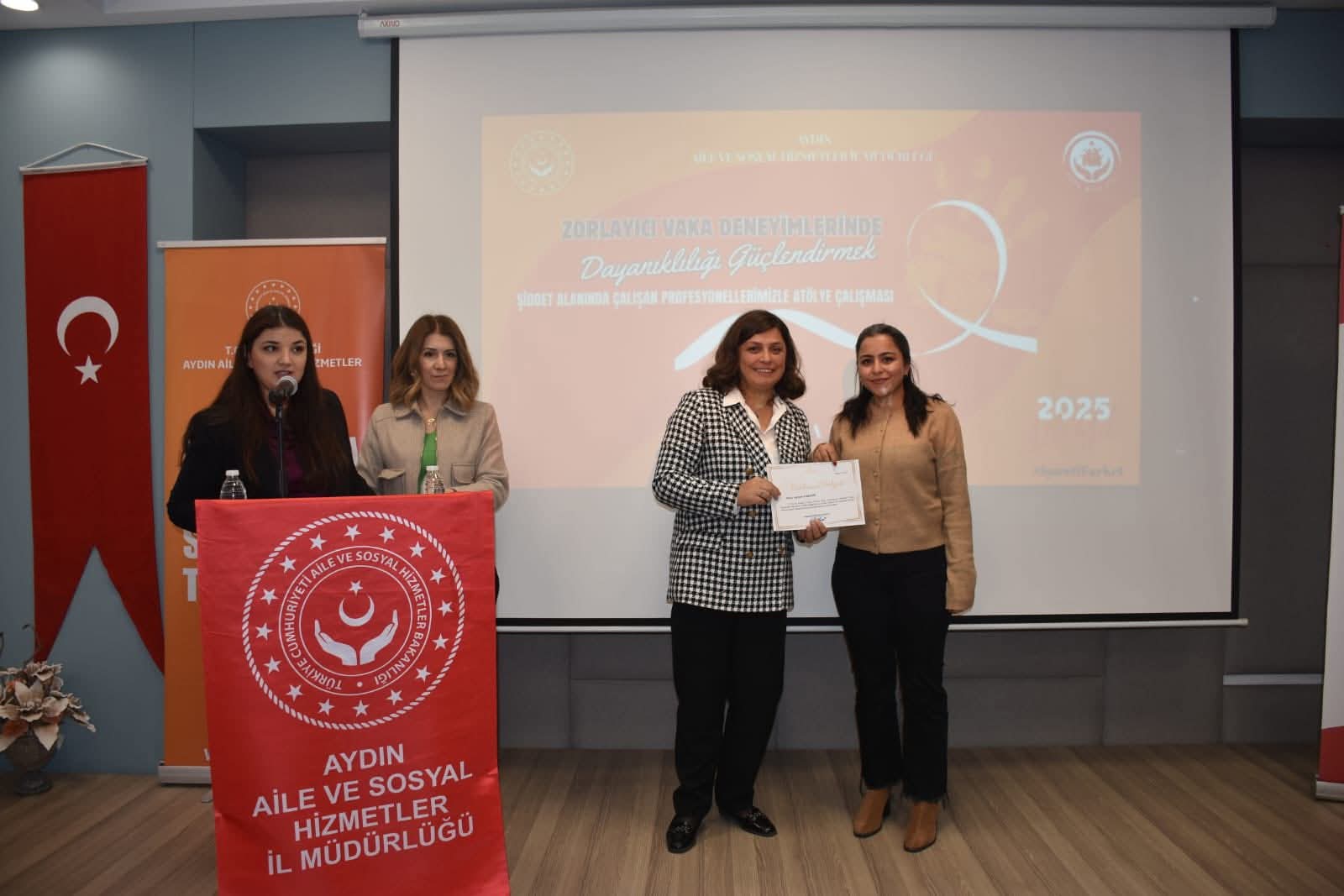 “Zorlayıcı Vaka Deneyimlerinde Dayanıklılığı Güçlendirmek Amacıyla Şiddet Mağdurlarıyla Çalışan Meslek Elemanlarına Yönelik Psikolojik Destek Atölyesi” kapsamında, Prof. Dr. Hülya Şahin Baltacı tarafından kurumlarımızda kadın hizmetleri alanında görev yapan personellerimize yönelik değerli bir sunum ve eğitim gerçekleştirilmiştir.