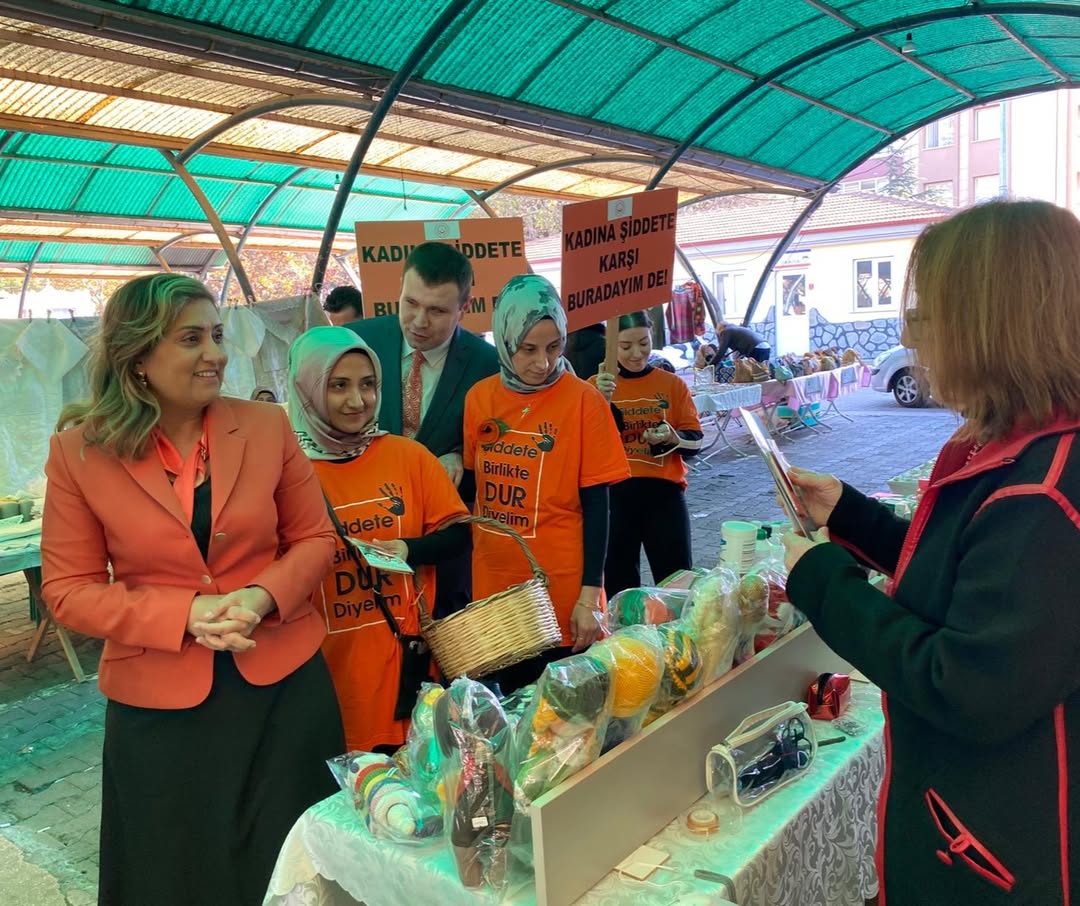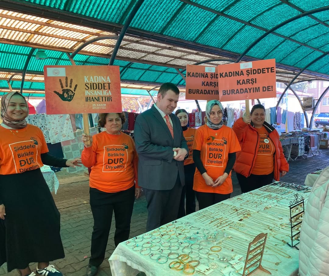 2025 #AileYılı kapsamında, 25 Kasım Kadına Yönelik Şiddetle Mücadele Günü vesilesiyle İl Müdürümüz Sayın Emine BÖÇKÜN, İl Müdür Yardımcımız Sayın Erdal KÖSE, Şiddet Önleme ve İzleme Merkezi Müdürümüz Sayın Muhammed Berk TAŞÇI ve değerli çalışma arkadaşlarımız, Hanımeli Pazarı’ndaki kadın esnaflarımız ve vatandaşlarımızla bir araya gelerek, kadına yönelik şiddetle mücadele konusunda bilgilendirmelerde bulundu ve farkındalık çalışmaları gerçekleştirdi.