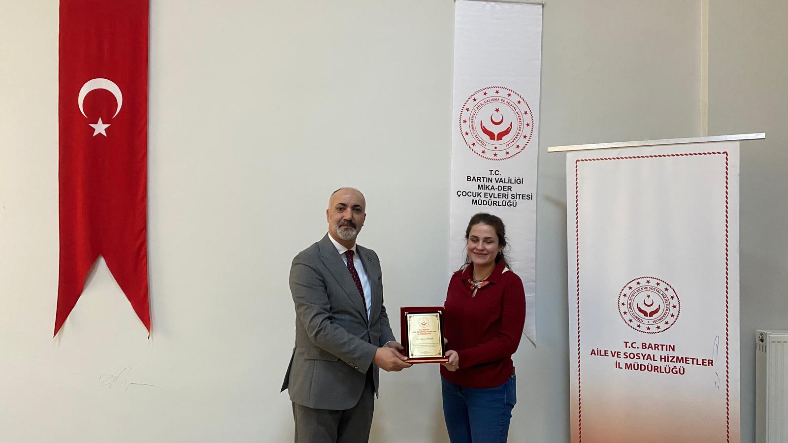 İl Müdürümüz Yavuz Korkmaz, Müdürlüğümüzde görev yapmakta iken görevde yükselme ve unvan değişikliği suretiyle başka illere ataması yapılan çalışma arkadaşlarımıza teşekkür belgelerini takdim etti.