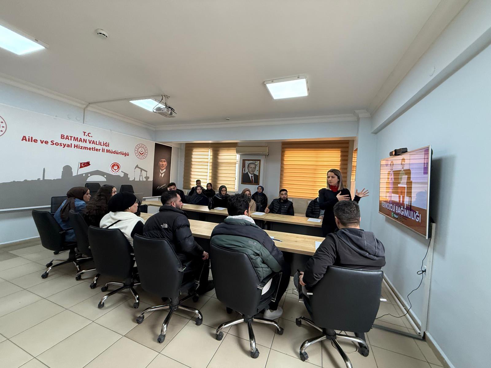 İl Müdürlüğümüze bağlı Batman Sosyal Hizmet Merkezi Müdürlüğü Eğitim ve Danışmanlık Birimi tarafından Evlenecek Gençlerin Desteklenmesi Projesine başvuran çiftlere “Teknoloji Bağımlılığı” eğitimleri verilmiştir.