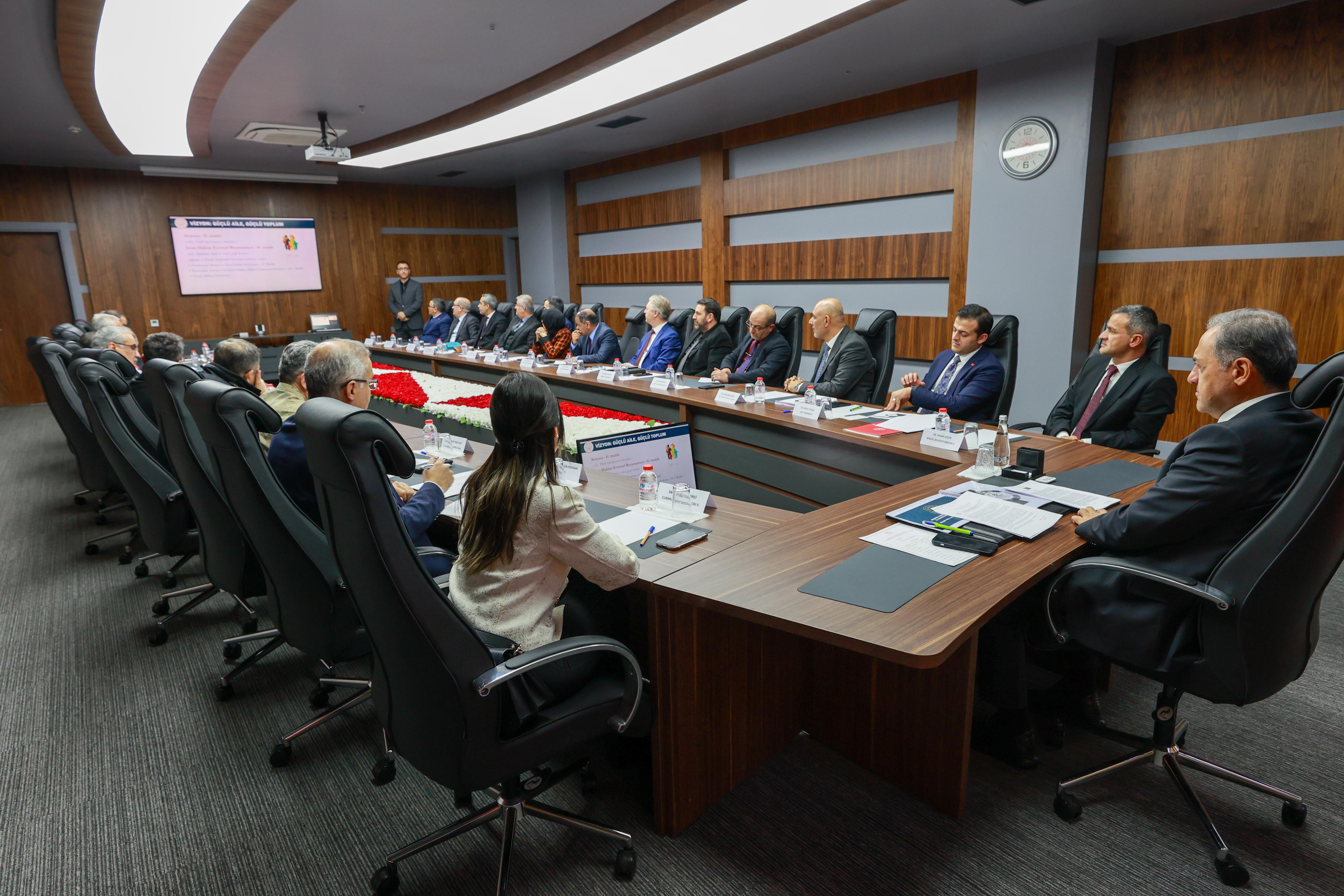 Toplantıda İl Müdürlüğümüzce geniş kapsamlı bir sunum ile yapıldı. Toplantıda ailenin korunması ve güçlendirilmesi çerçevesinde mevcut durum değerlendirildi ve geleceğe yönelik planlamalar ele alındı. Gündem maddeleri kapsamında Nüfus ve Demografik Politikaların Geliştirilmesi, Ailenin Güçlendirilmesi ve özellikle çocukları ve gençleri hedef alan zararlı akımlara karşı ailelerin bilinçlendirilmesi ve toplumun dirençli hale getirilmesi için yapılması gereken çalışmalar değerlendirildi.