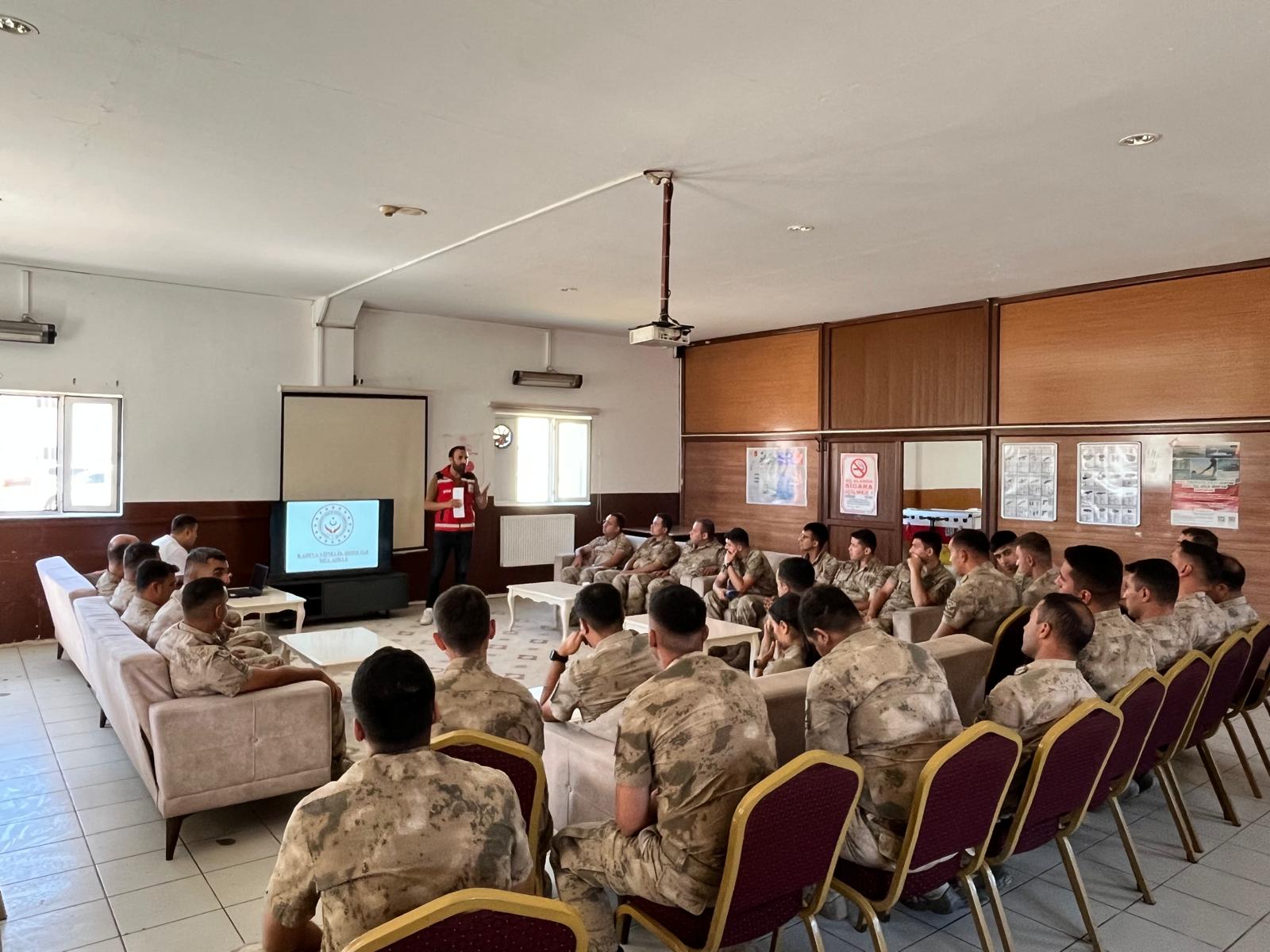 Karlıova İlçe Jandarma Komutanlığında görev yapan er ve erbaşlara '' Kadına Yönelik Şiddetle Mücadele'' hakkında eğitim Kurum personellerince verilmiştir.