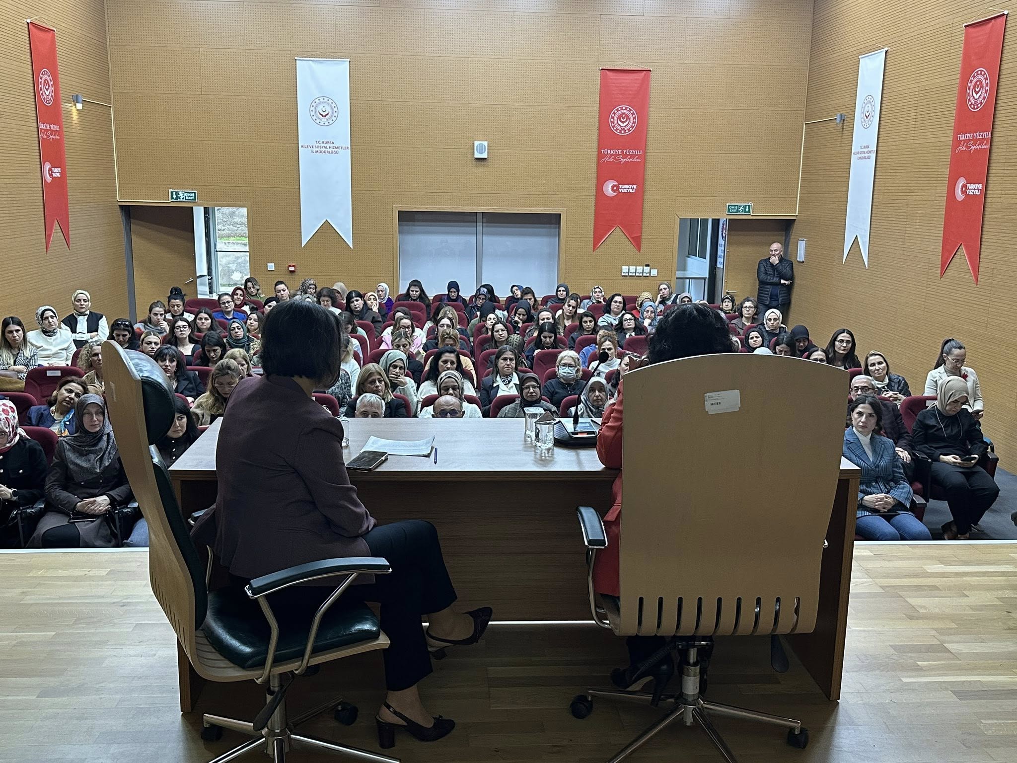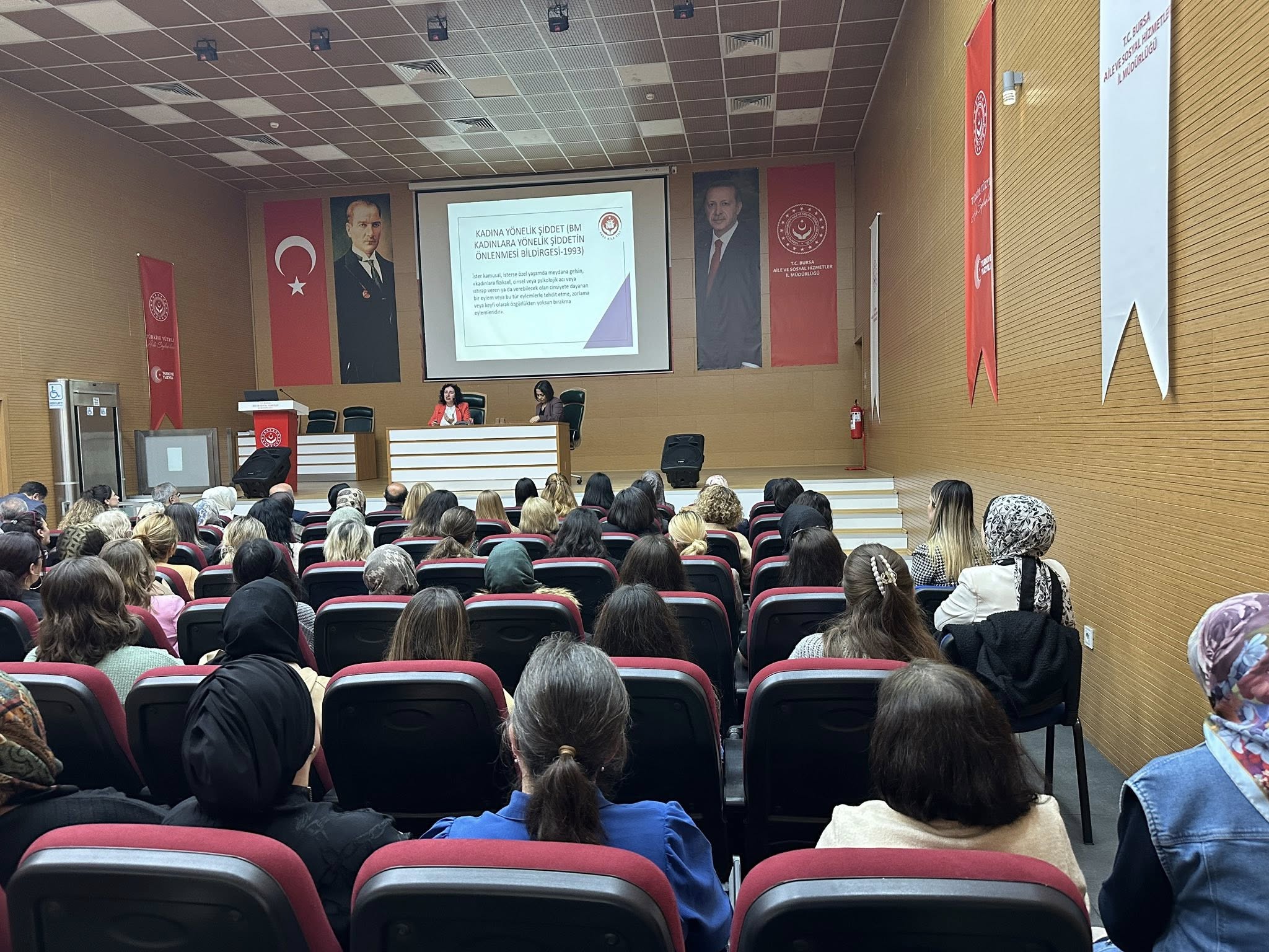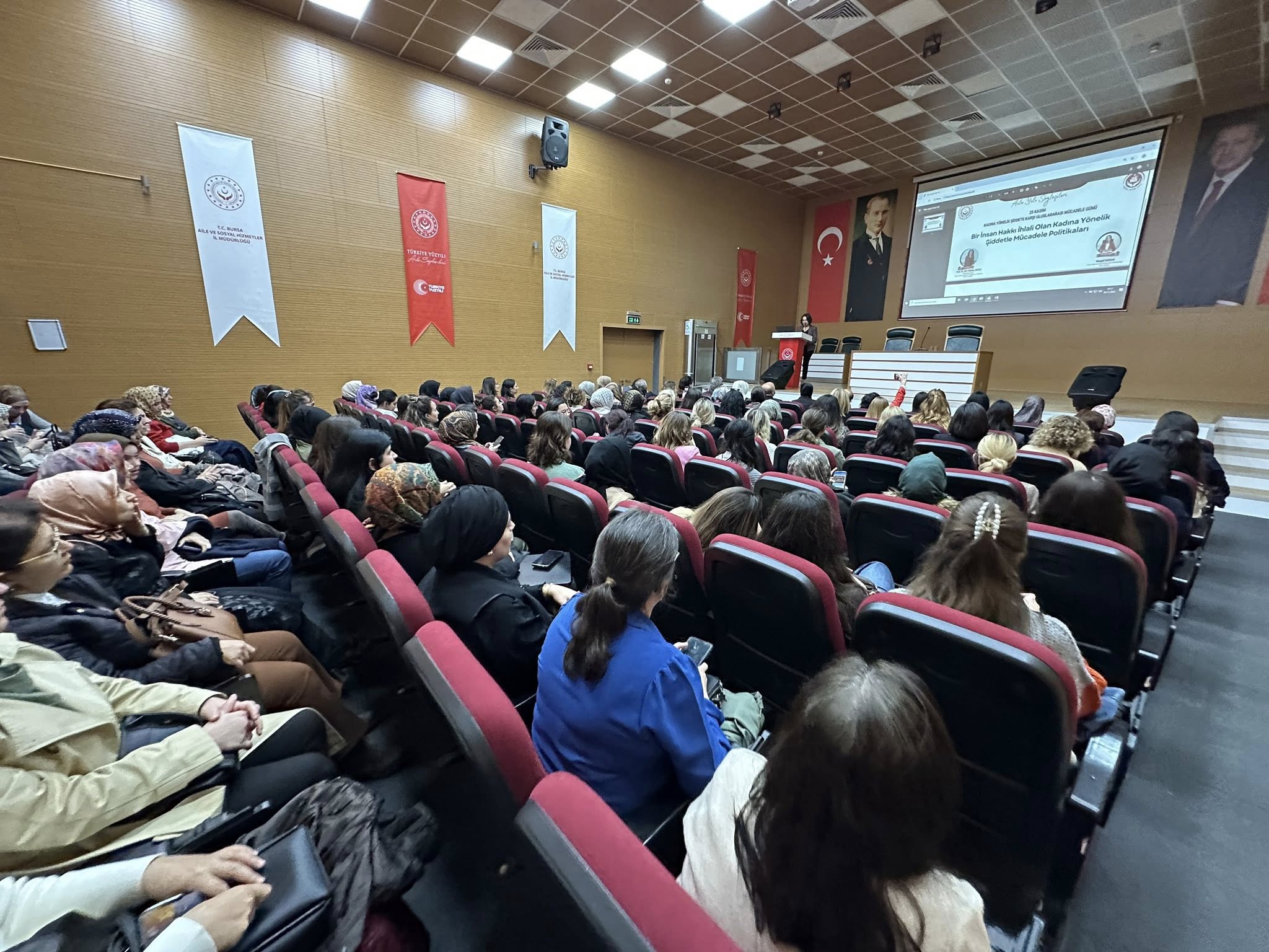 25 Kasım’ın taşıdığı güçlü mesajı daha geniş kitlelere ulaştırmak amacıyla düzenlenen söyleşiye Vali Yardımcımız Mustafa Güney, AK Parti İl Yöneticileri Metin Albayrak, Gülşen Uysal, İl Müdür Yardımcılarımız, Şube Müdürlerimiz, Kurum çalışanlarımız, paydaş kurumlarımızın yönetici ve çalışanları, sivil toplum örgütleri ve hizmetlerimizden yararlanan kıymetli ailelerimiz katılım sağlayarak kadına yönelik şiddetin bir insan hakkı ihlali olduğuna vurgu yaptılar.