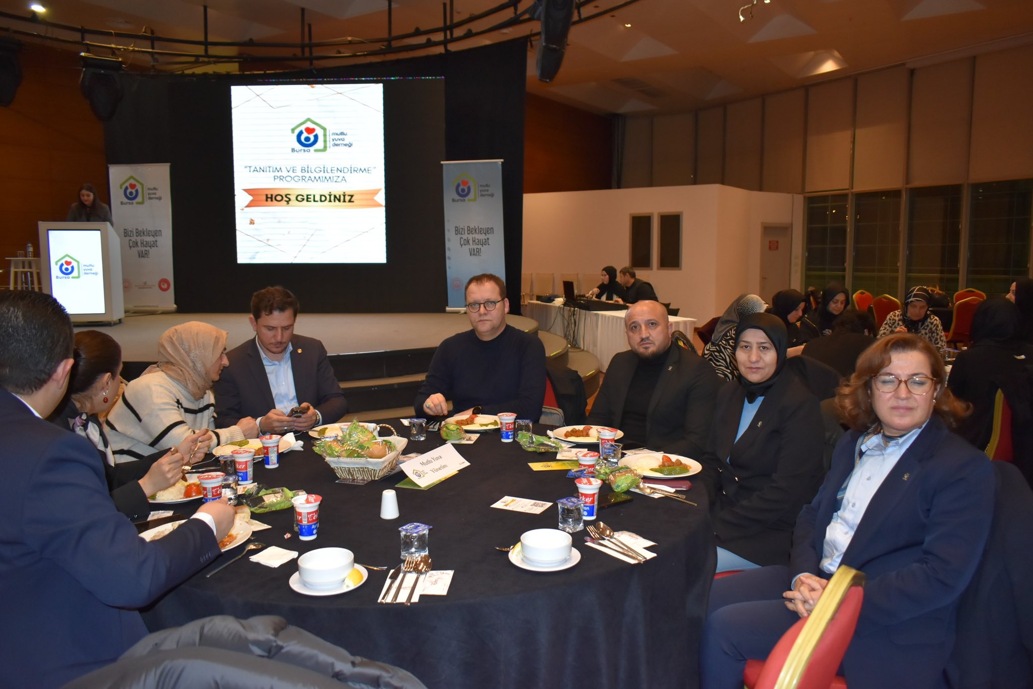 Bursa Mutlu Yuva Derneği Tanıtım ve Bilgilendirme Programı; Prof. Dr. Mehmet Emin Ay, önceki dönem Belediye Başka Alinur Aktaş, AK Parti İl Yöneticileri Metin Albayrak, Gülşen Uysal, İl Müdürümüz Faruk Uysal, Bursa Mutlu Yuva Derneği Yönetim Kurulu Başkanı Rıdvan Güler, İl Müdür Yardımcımız, kuruluş müdürlerimiz ve dernek üyelerinin katılımıyla gerçekleştirildi.