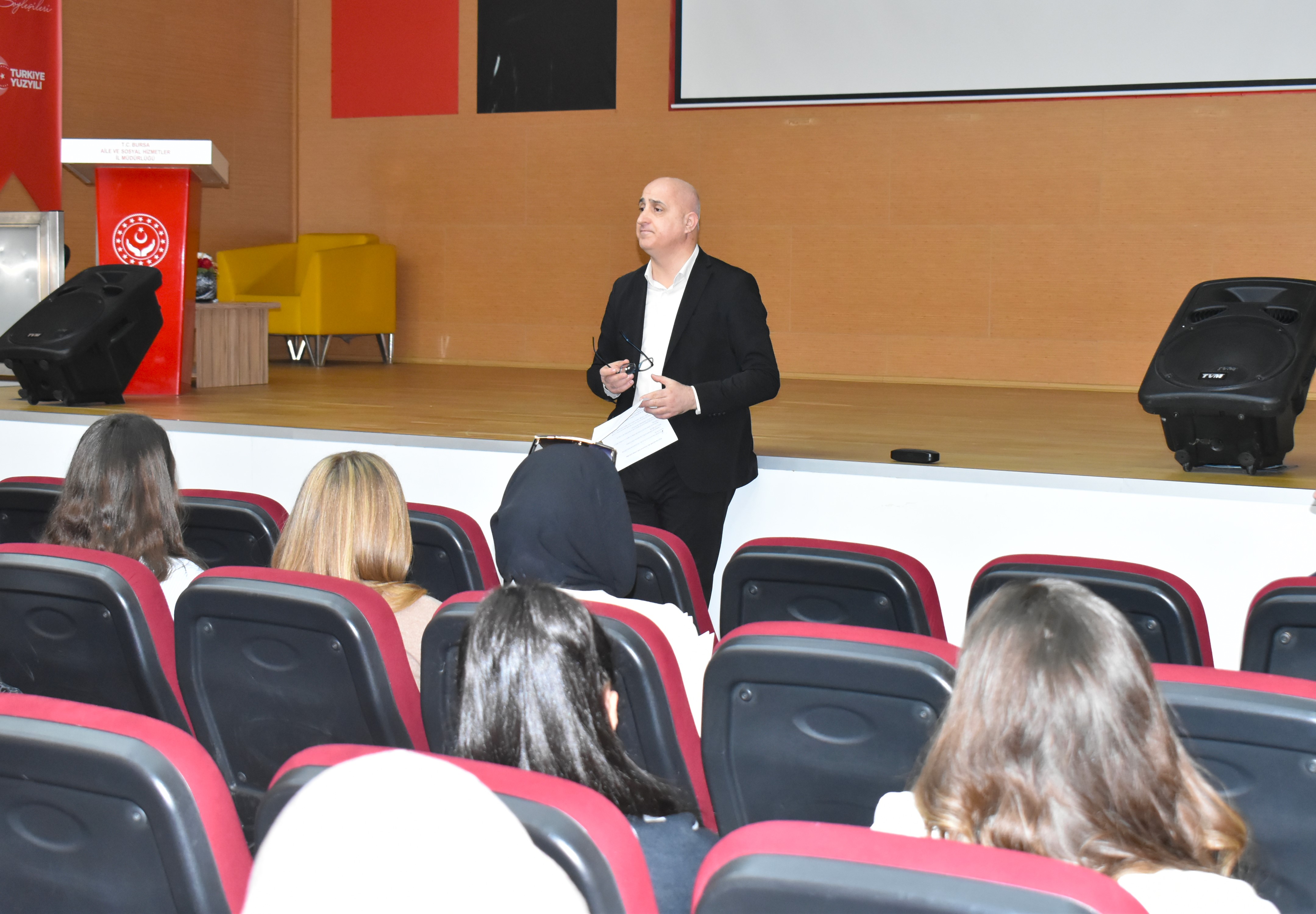 Şube Müdürümüz tarafından verilen eğitimde; Bakanlığımızın teşkilat yapısı, hizmet modelleri, mevzuat çerçevesi, kurumsal işleyiş süreçleri, mesleki etik ilkeler ile staj sürecine ilişkin usul ve esaslar hakkında bilgilendirme yapılmıştır.