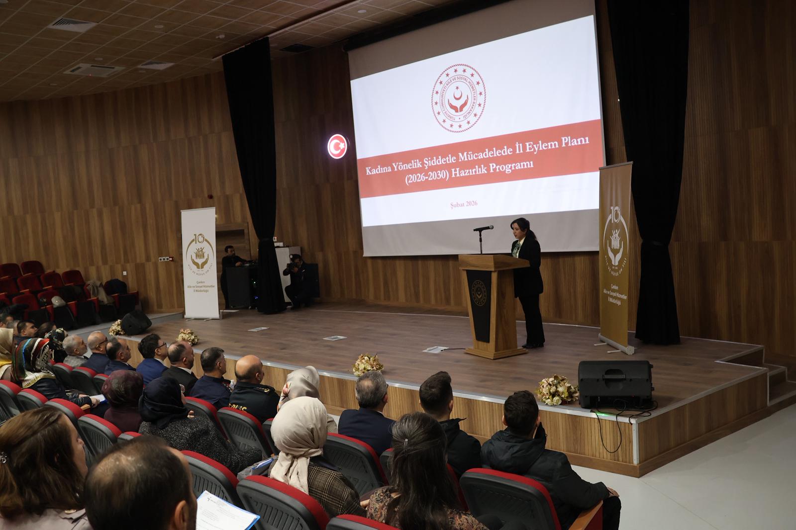 Kadına Yönelik Şiddetle Mücadele V. Ulusal Eylem Planı (2026-2030) kapsamında, ilimizde şiddetle mücadeleye yönelik yol haritasının belirlenmesi amacıyla İl Müdürlüğümüz koordinesinde Valimiz Sn. Hüseyin ÇAKIRTAŞ’ın başkanlığında çalıştaya;İl Müdürümüz Sn.Abdulhaluk LONGA ,kamu kurum amirleri ve temsilcileri ile sivil toplum kuruluşlarının temsilcilerinin katılımıyla “Çankırı İl Eylem Planı Hazırlık Çalıştayı” gerçekleştirildi.
