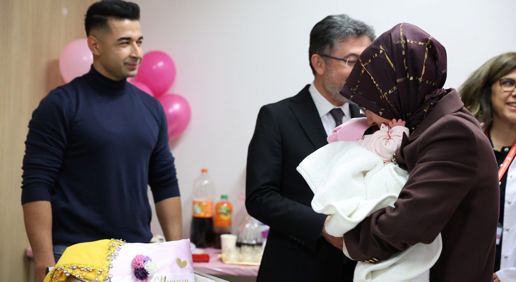 Bakan Göktaş ve Bakan Yumaklı ilk olarak üçüncü bebekleri dünyaya gelen Meryem-Yasin çiftinin bebekleri Asel’i ziyaret ederek, sağlıkla büyümesi temennisinde bulundu.