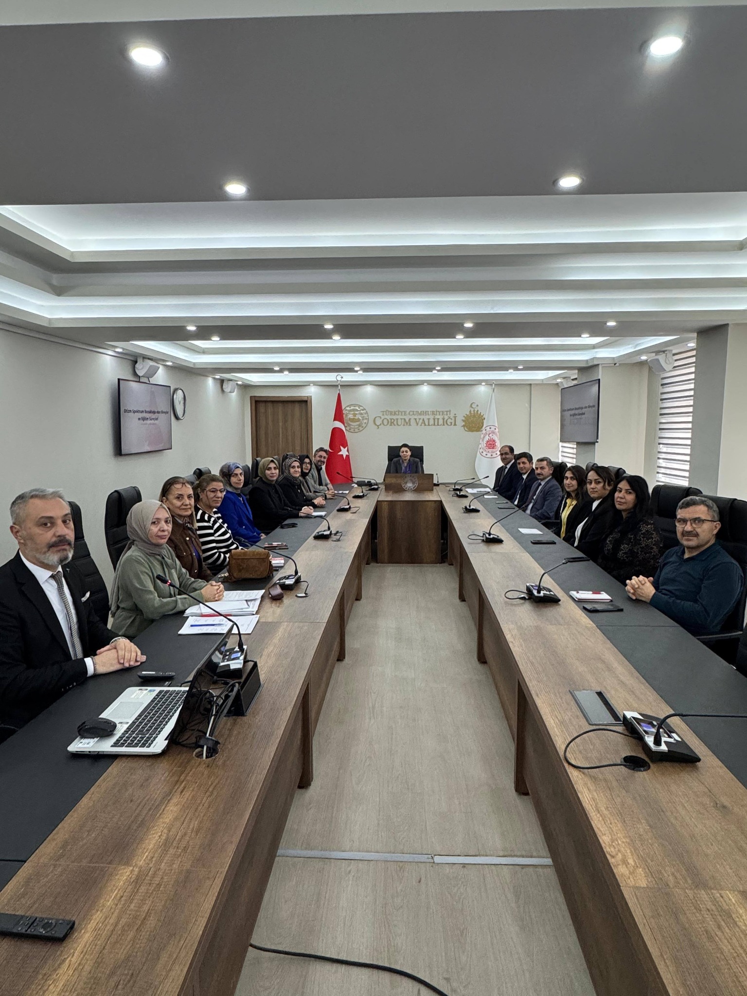 Toplantıda, otizm alanında yürütülen çalışmaların kurumlar arası iş birliği ve koordinasyon içerisinde sürdürülmesinin önemine vurgu yapıldı. Program kapsamında İl Millî Eğitim Müdürlüğü tarafından il genelinde otizmli bireylere yönelik yürütülen eğitim hizmetleri ve gerçekleştirilen çalışmalar hakkında kapsamlı bir sunum yapıldı.