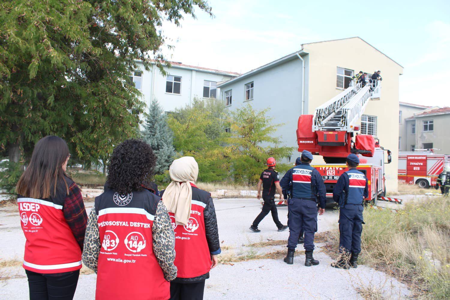 Tatbikat senaryosu kapsamında; metruk binada çıkan yangına kısa sürede müdahale edilerek, içeride mahsur kalan vatandaşların kurtarılması, tahliye edilmesi ve olay yerinde ilk müdahalenin yapılması adımları uygulandı.