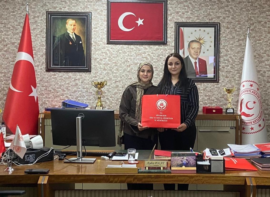İl Müdürümüz Sayın Aydın POLAT ve Çocuk Hizmetlerinden Sorumlu İl Müdür Yardımcımız Ayşe Nur BAYSAL, Çocuğumuz Ela Kaplan’ı bu önemli başarısından dolayı tebrik ederek hediyeler takdim etti.