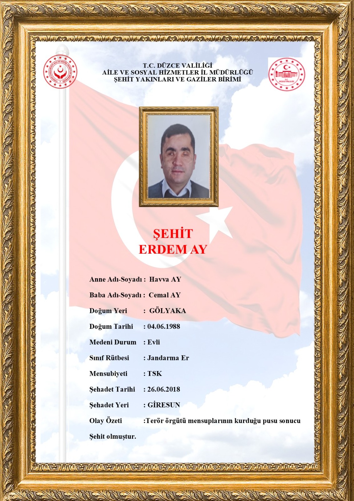 www.aile.gov.tr --- /duzce/sehitlerimiz/erdem-ay ---- Erdem AY