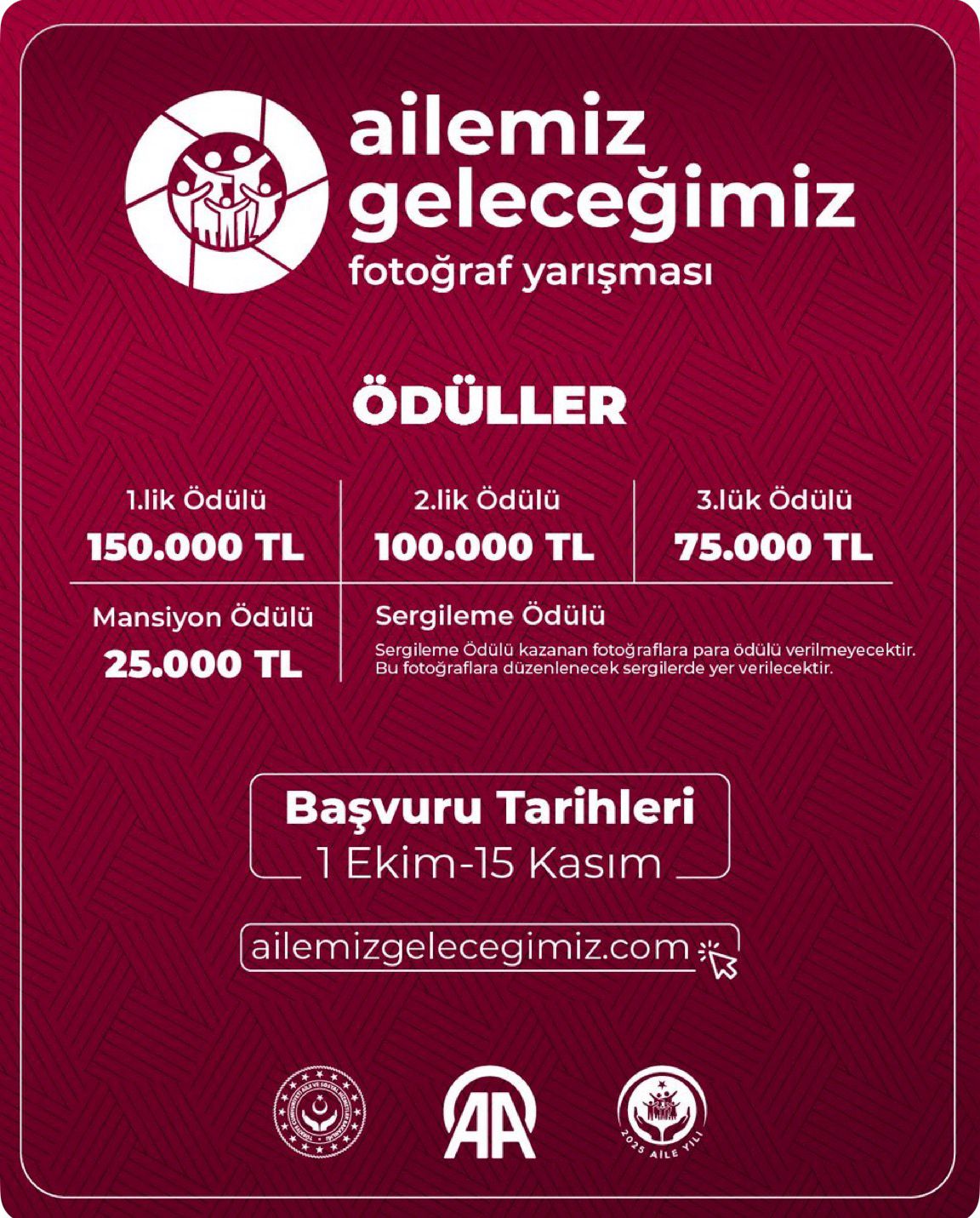 Aile ve Sosyal Hizmetler Bakanlığı tarafından Anadolu Ajansı (AA) iş birliğinde toplumda ailenin önemine dair daha güçlü farkındalık oluşturulması amacıyla "Ailemiz Geleceğimiz Fotoğraf Yarışması" düzenlenecek