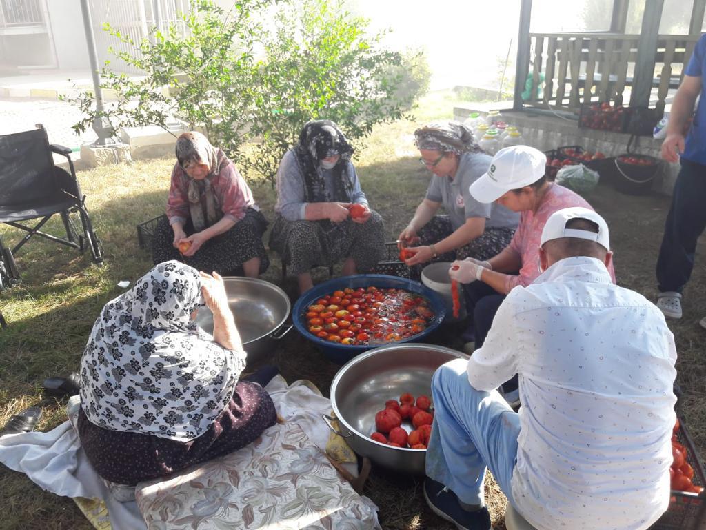 El emeği ve göz nuru olarak yetiştirilen domatesler yaşlılarımız tarafından tek tek toplandı. Domatesler; yılların tecrübesi ve hünerli ellerden geçerek, “kışlık konserve ve salça” yapılarak değerlendirildi.
