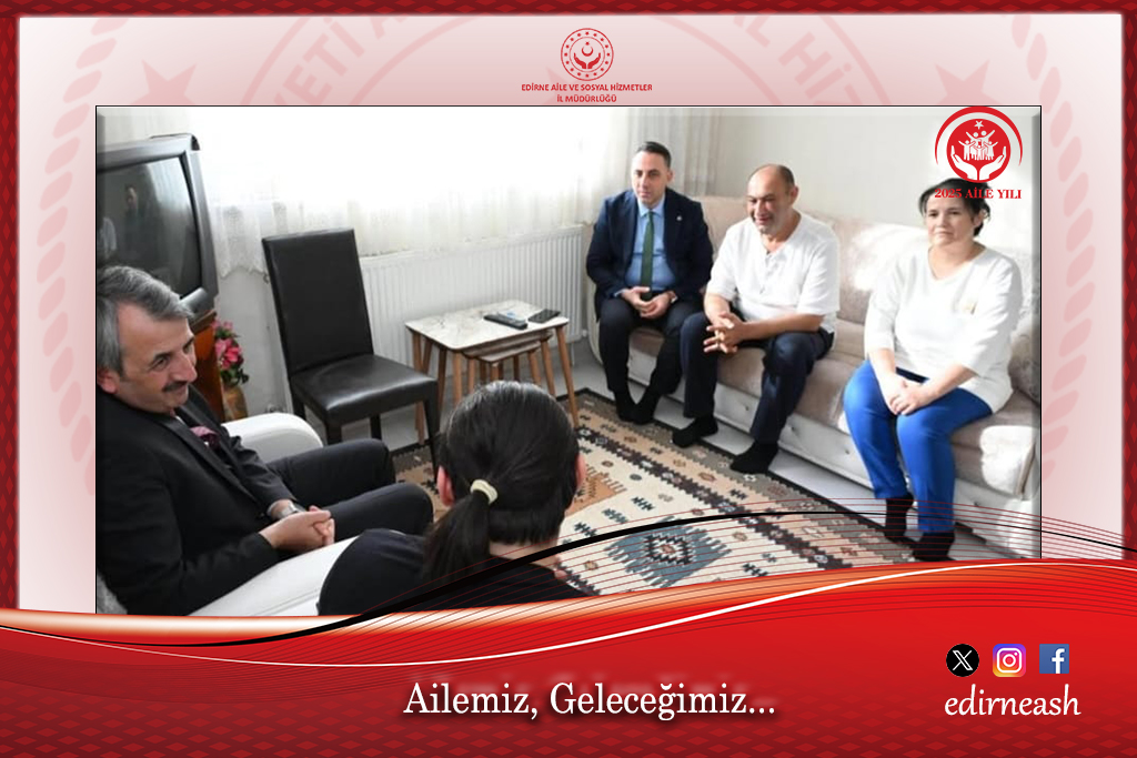 Aile Ziyaretleri kapsamında ilimizde ikamet eden Cemal Hazar KAHRAMAN ve Ailesini Ziyarete Edirne Valisi Sayın Yunus SEZER, Edirne Aile ve Sosyal Hizmetler İl Müdürü Harun TOHUMCU, Edirne Sosyal Yardımlaşma ve Dayanışma Vakfı Müdürü Tezcan FİDAN ve Kuruluş Müdürleri Katılım sağladı. Yapılan samimi sohbetin ardından ziyaret sona erdi.
