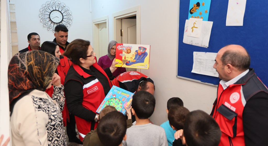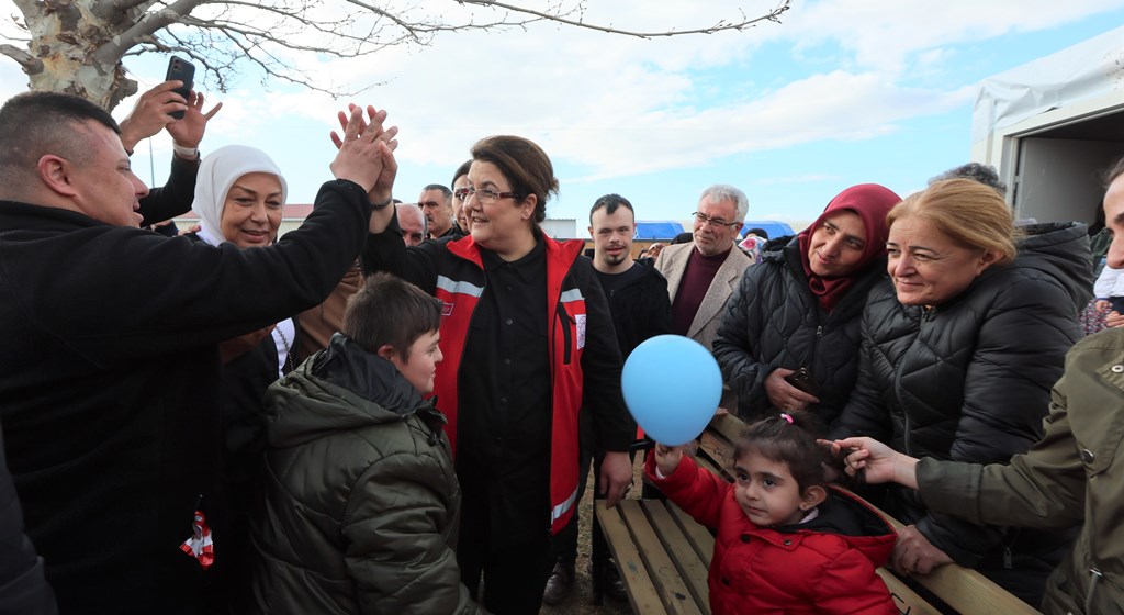 Minister Yanık also visited the warehouse where in-kind donations were accepted, and then proceeded to Beydağı Temporary Accommodation Center to inaugurate the "Mola Evleri (Recess Houses)" prepared for children with special needs in cooperation with the International Down Syndrome Federation and İyiliğe Uçanlar Association.