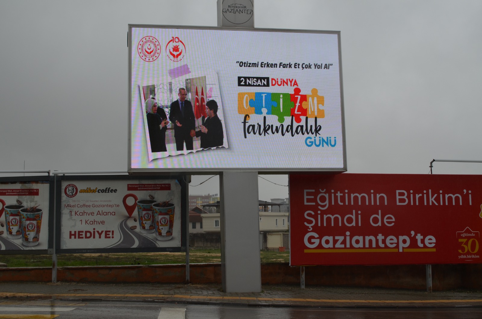 Ayrıca, şehir genelinde dijital ekranlar ve digiboardlar aracılığıyla farkındalık çalışmaları yürütüldü. İşlek noktalar ve kamusal alanlarda yerleştirilen afişler ve görseller ile otizm spektrum bozukluğuna dair temel bilgiler ve erken tanının önemi halka aktarıldı. Etkinlik kapsamında dağıtılan mavi balonlar ve broşürlerle toplumsal bilincin güçlendirilmesi hedeflendi.